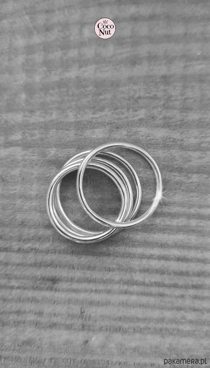 Komplet: 4 obrączek ze srebra 925, o szerokości ok. 1-1,2 mm.
