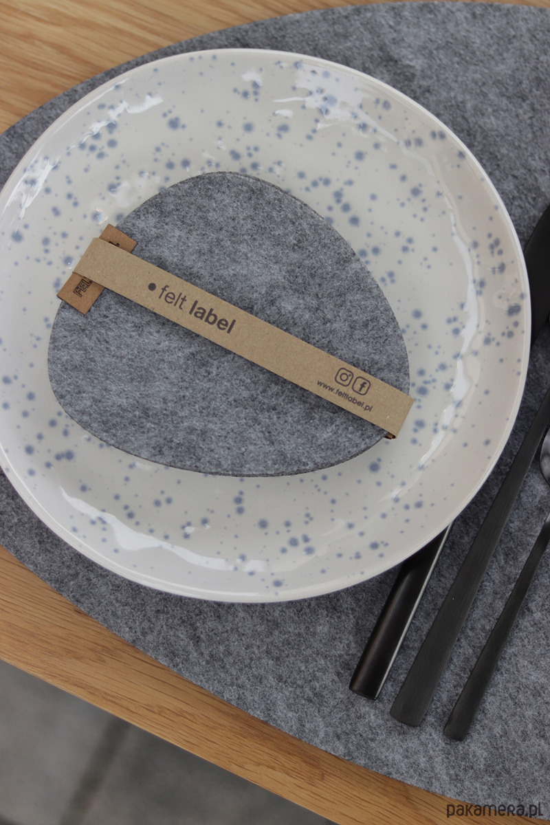 - kształt: gładka, minimalistyczna podkładka w kształcie inspirowanym kamieniem z metką wykonaną z Washpapy