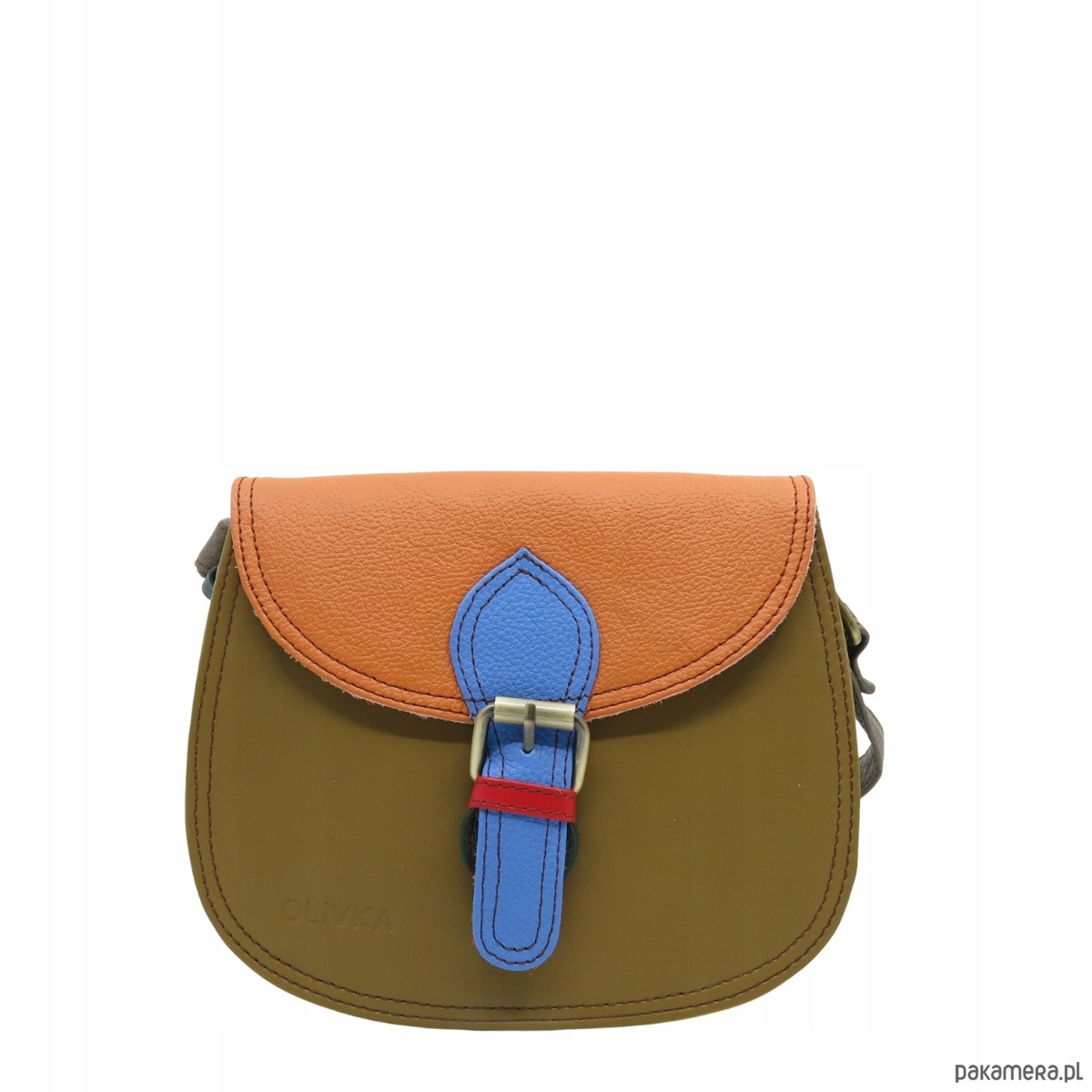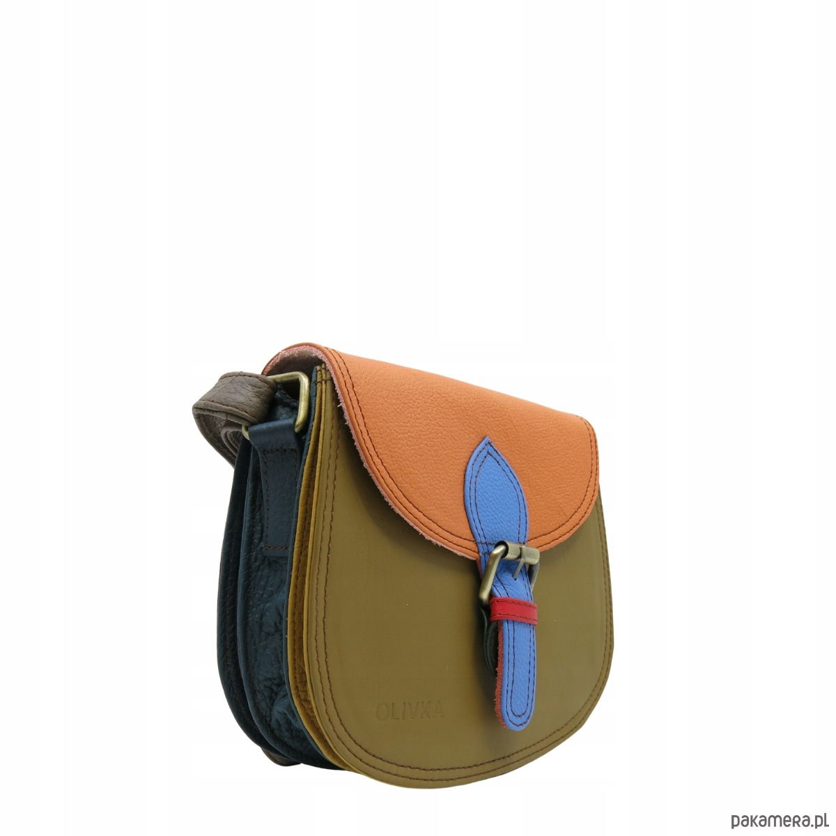 Damska listonoszka skórzana ze skrawków elegancka poręczna eko OLIVKA