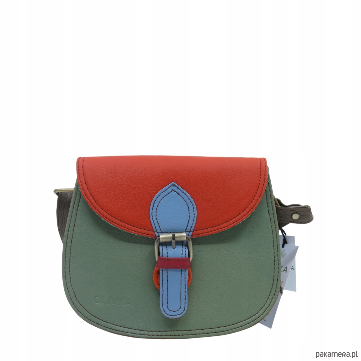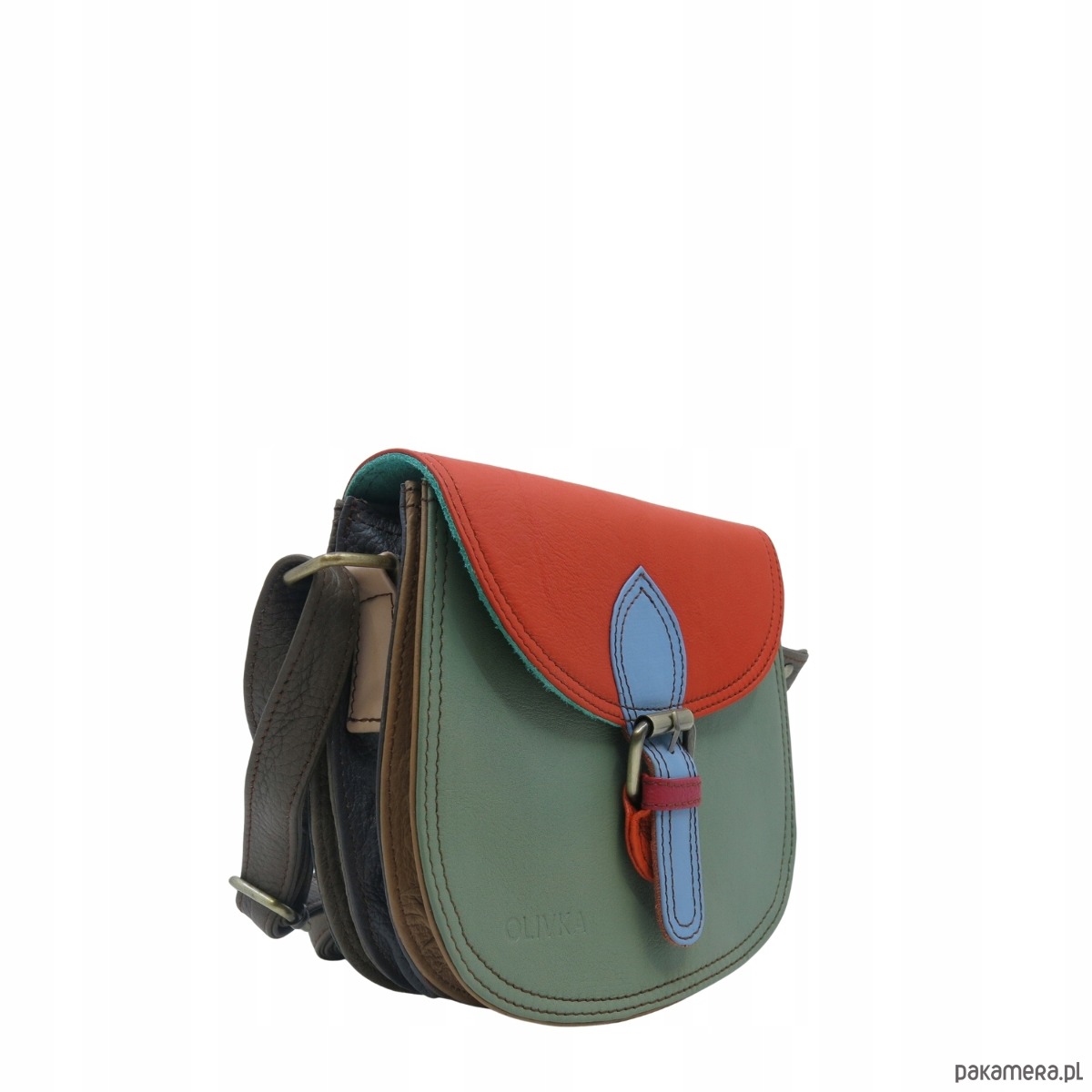 Damska listonoszka skórzana ze skrawków elegancka poręczna eko OLIVKA