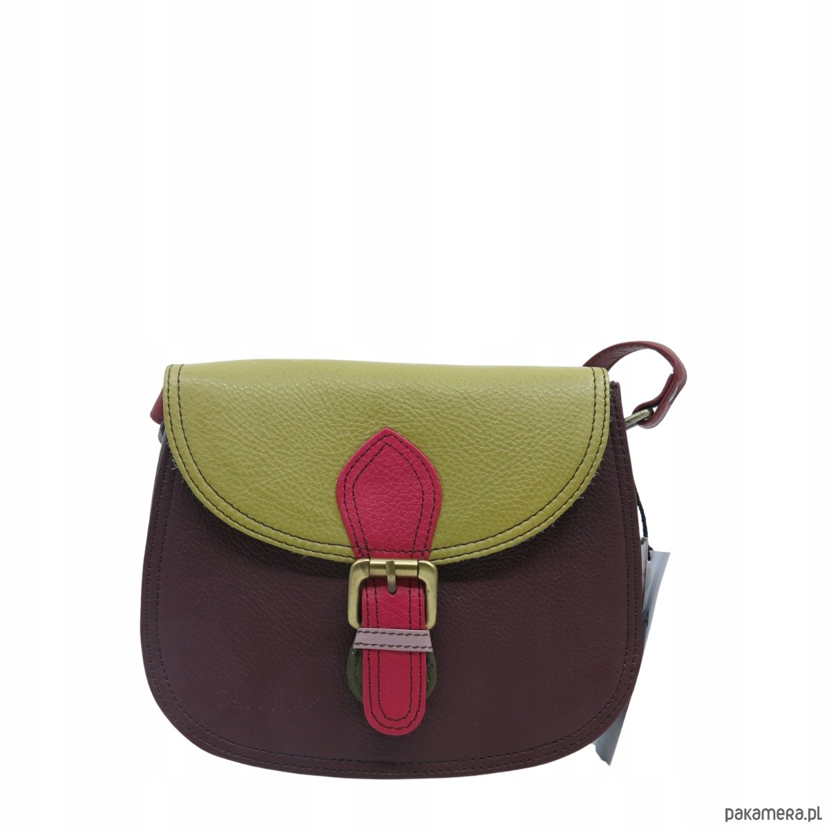 Damska listonoszka skórzana ze skrawków elegancka poręczna eko OLIVKA