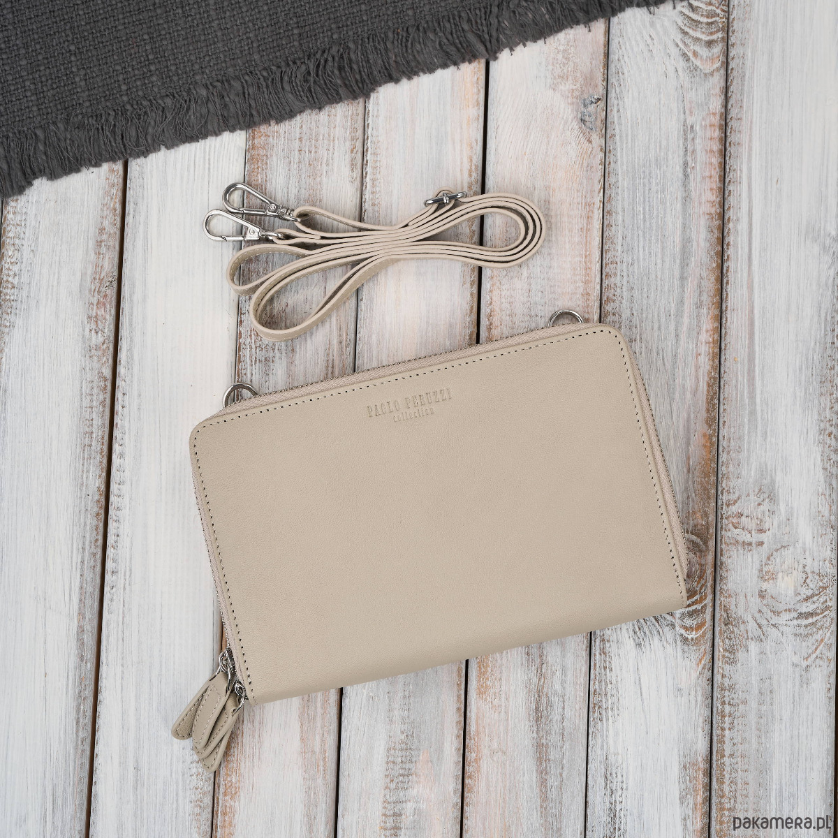 Damska mała torebka skórzana kopertówka na ramię do ręki beżowa Paolo Peruzzi KV-02-BG