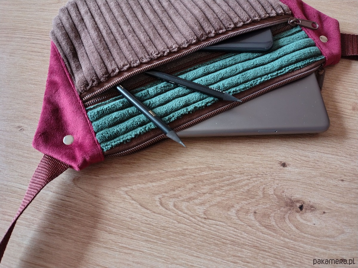Torebka do noszenia w różnych wariantach: na ukos z przodu, z tyłu i na ramię. Sprawdzi się np: na rowerze, na zakupach, na wycieczce, do pracy, do szkoły, na spacer z dziećmi gdzie często potrzebne są wolne ręce. Nerka jest bardzo wygodna, lekka i pojemna. Z powodzeniem zastąpi małą torebkę.