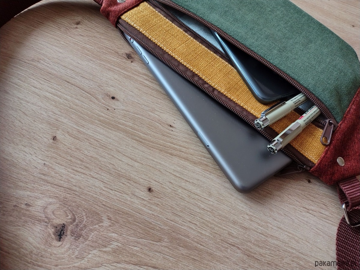 Nerko-torebka wykonana z tkanin tapicerskich. Możesz do niej swobodnie schować: ipada 10cali, mały portfel, telefon, klucze, dokumenty, chusteczki.