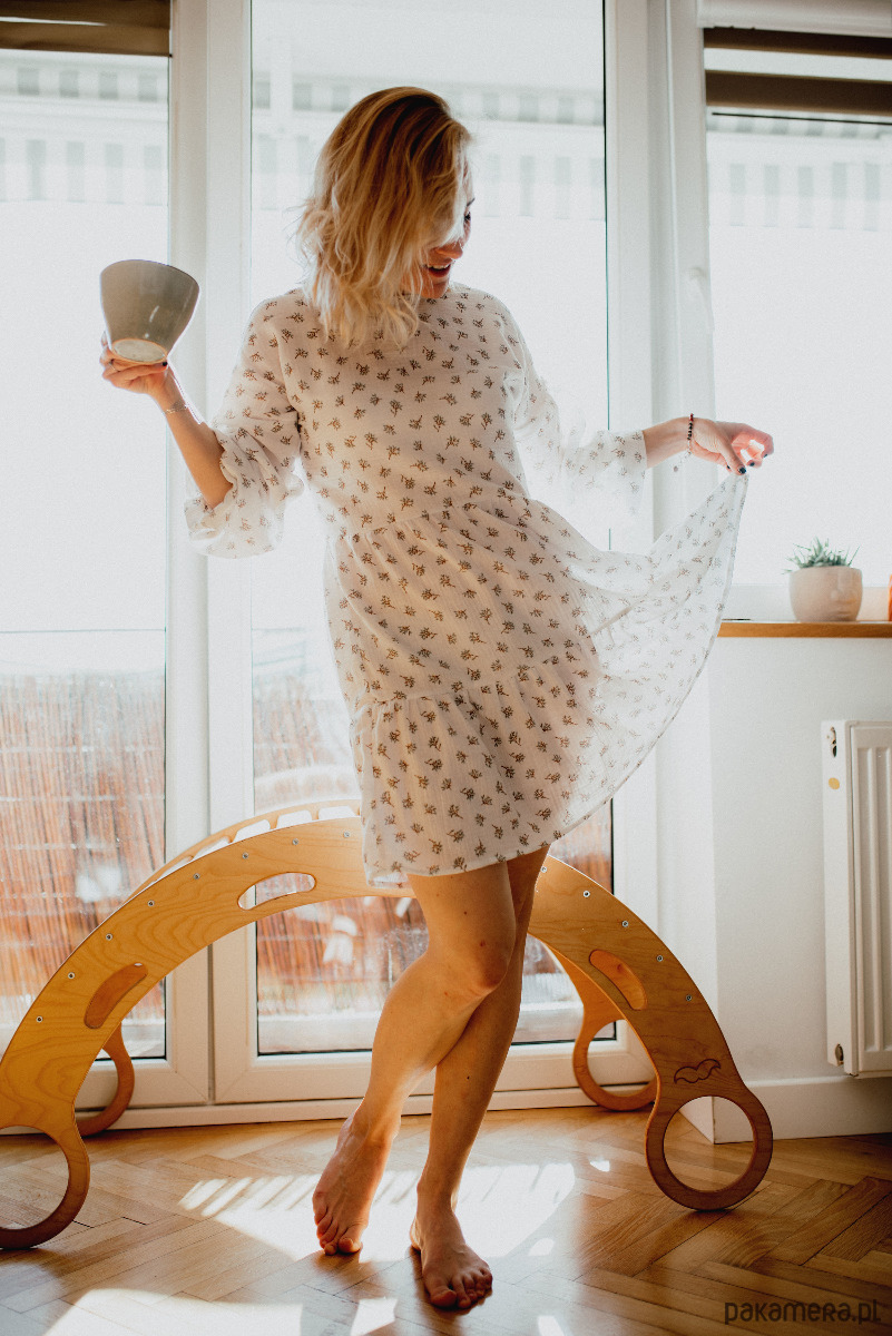 Zwiewna, kobieca, delikatna, wygodna... Taka właśnie jest ta sukienka. Uszyta z delikatnego muślinu w kwiatowy print. Idealna na każdą okazję. Zarówno na ważne okazje, randkę, spacer po plaży, spotkanie z przyjaciółką, a nawet wyjście z dziećmi.