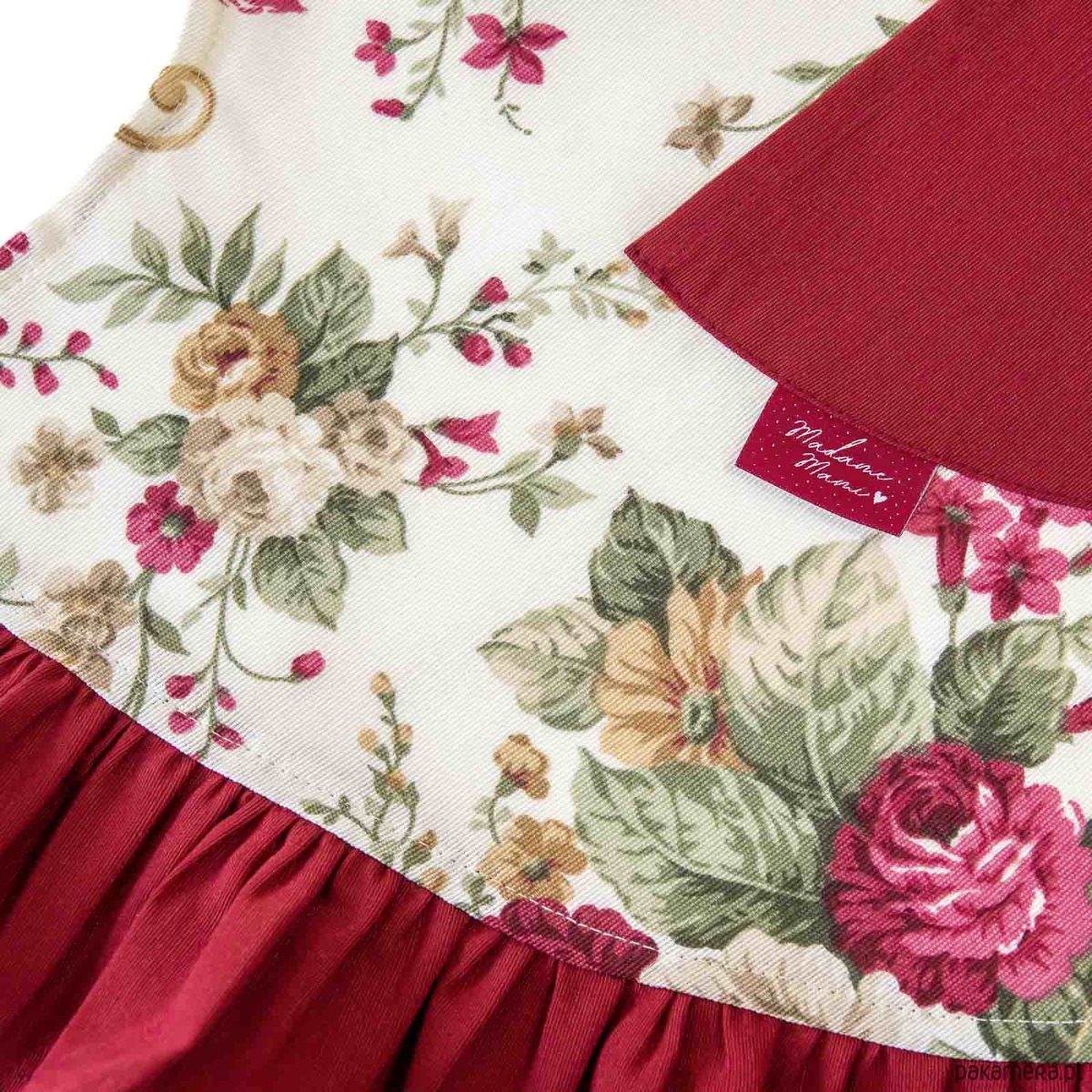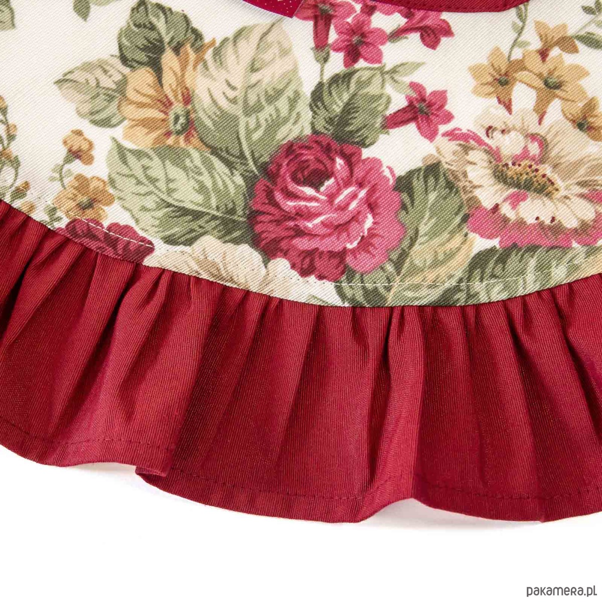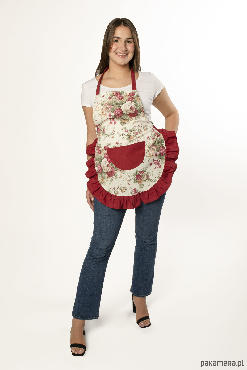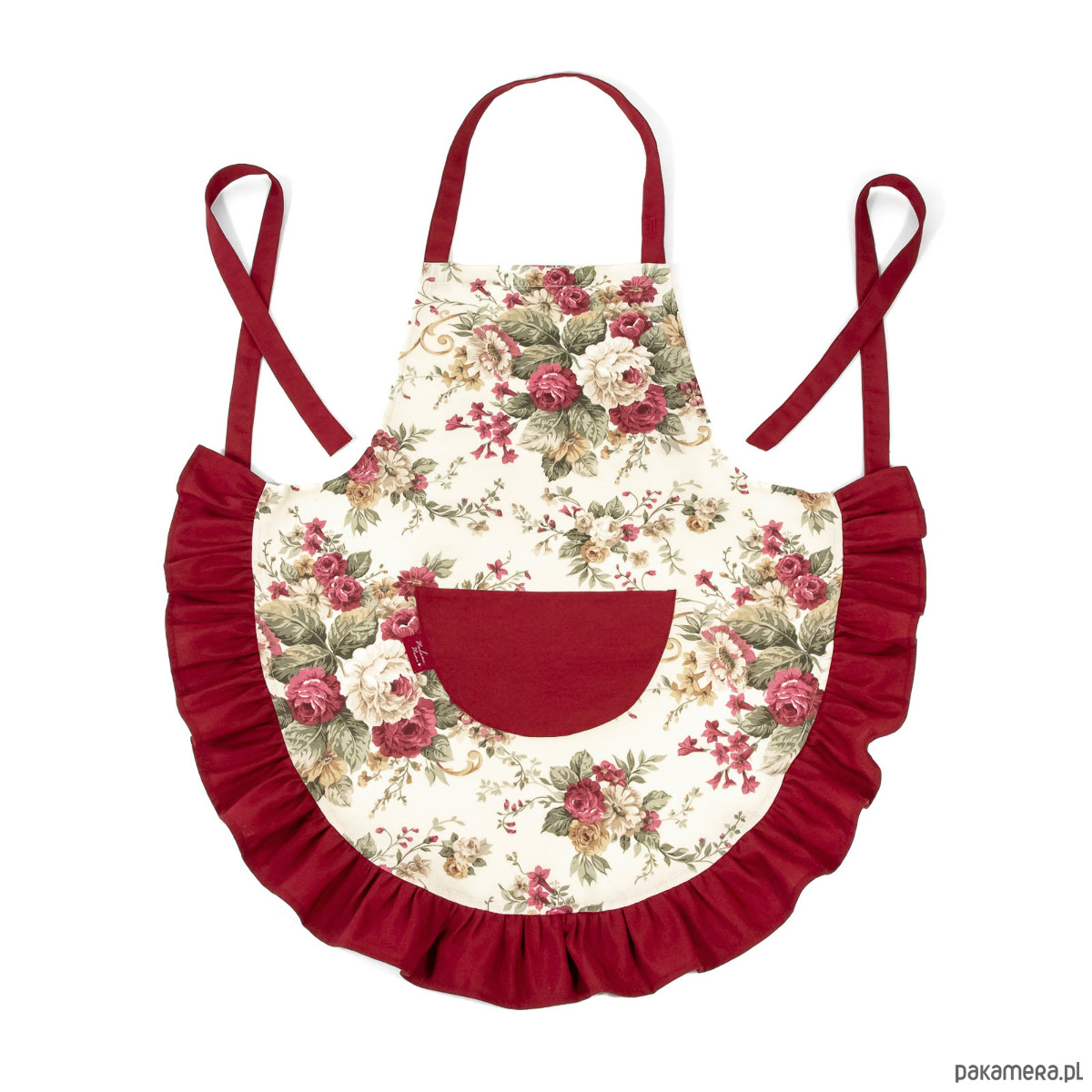 Klasycznie piękny i elegancki fartuch kuchenny z fantazyjną falbaną, z motywem przewodnim angielskich róż. Fartuch ma ponadczasowy kobiecy krój, w którym każda kobieta bez względu na typ sylwetki będzie się dobrze czuć i wspaniale prezentować.
