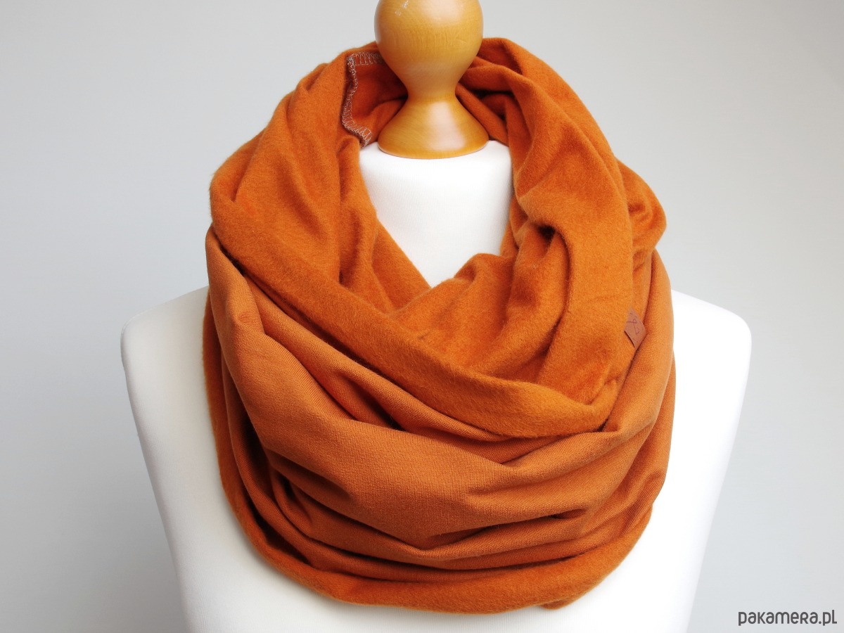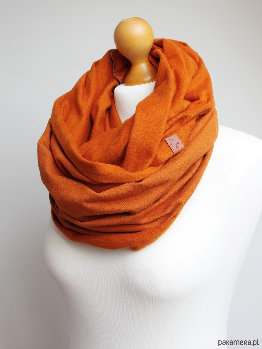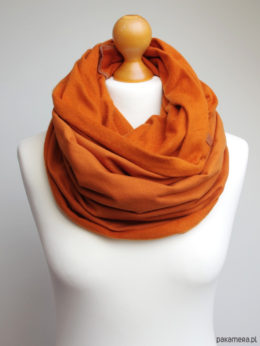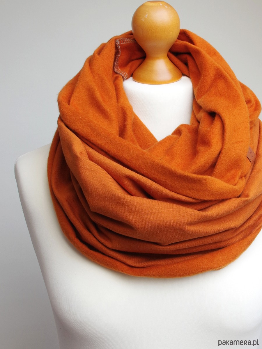 Gruby, zimowy komin dresowy w kolorze rudym. Komin uszyty został z dzianiny dresowej - puszystej, nadaje się na okres jesienno - zimowy - wiosenny. Komin jest bardzo przyjemny w dotyku, ładnie się układa, jest puszysty. Brzegi są ładnie wykończone ściegiem maszynowym, nie strzępią się. Idealny dodatek.