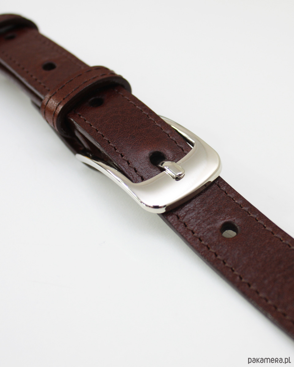 Pasek zakończony jest klasyczną metalową klamerką w kolorze srebrnym.