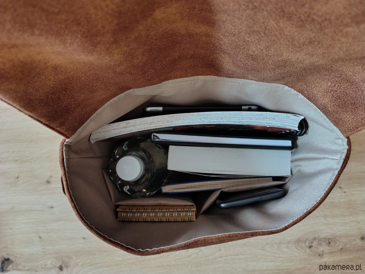 Do plecaka możesz zapakować laptopa, dokumenty, książkę oraz mniejsze przedmioty takie jak np. telefon, portfel, klucze oraz butelkę wody. Wewnątrz dwie otwarte kieszenie. Z tylu plecaka kieszeń zamykana na suwak.