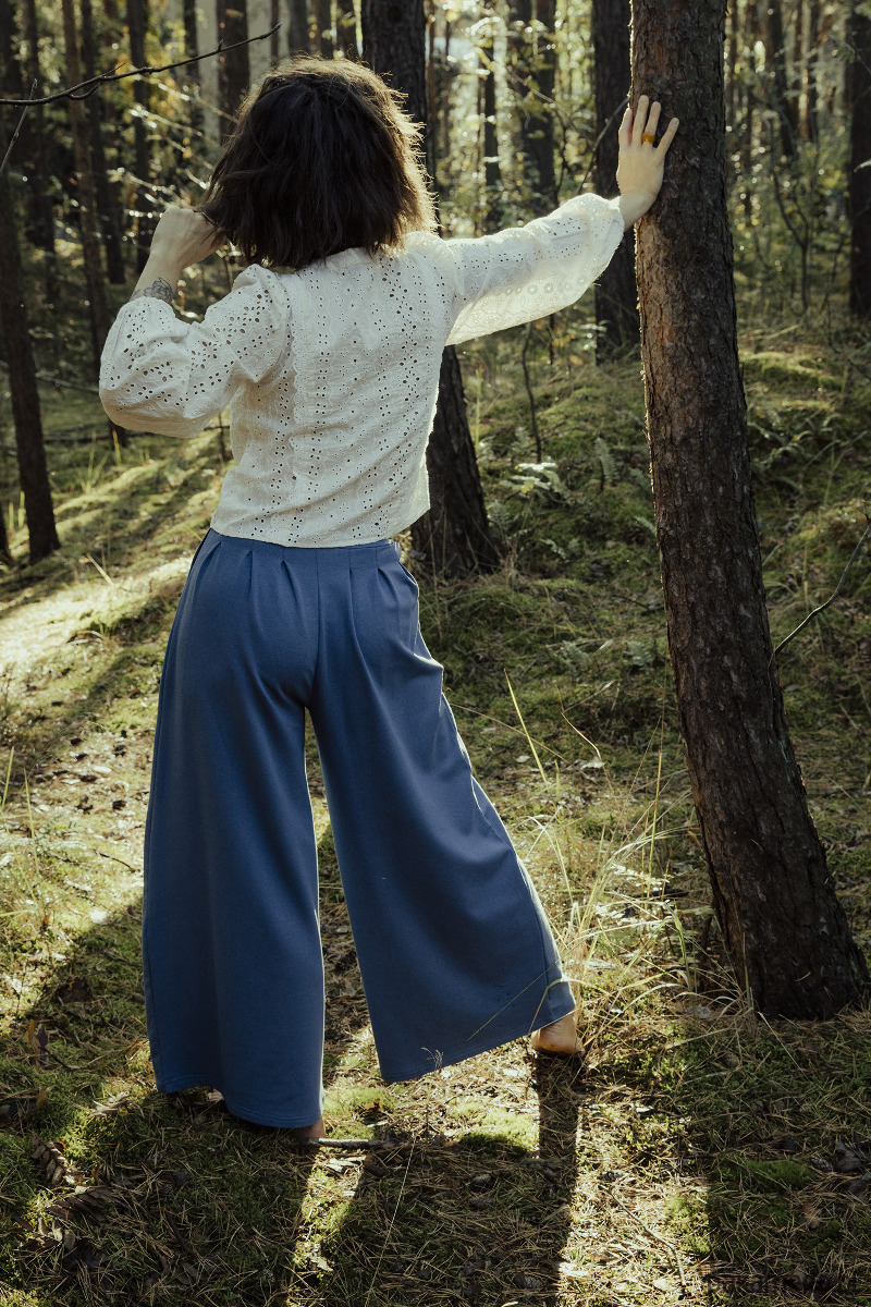 Damskie szerokie spodnie Niebieskie