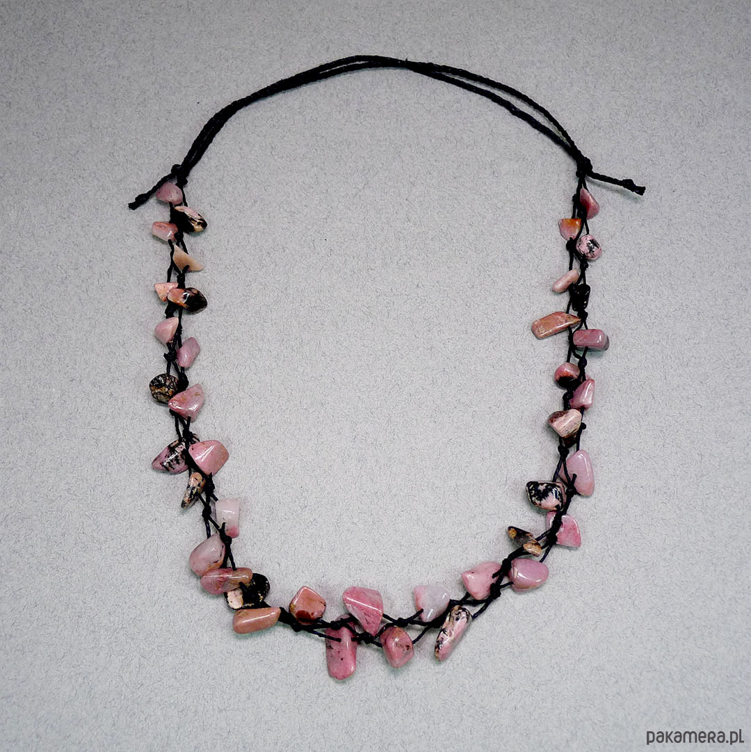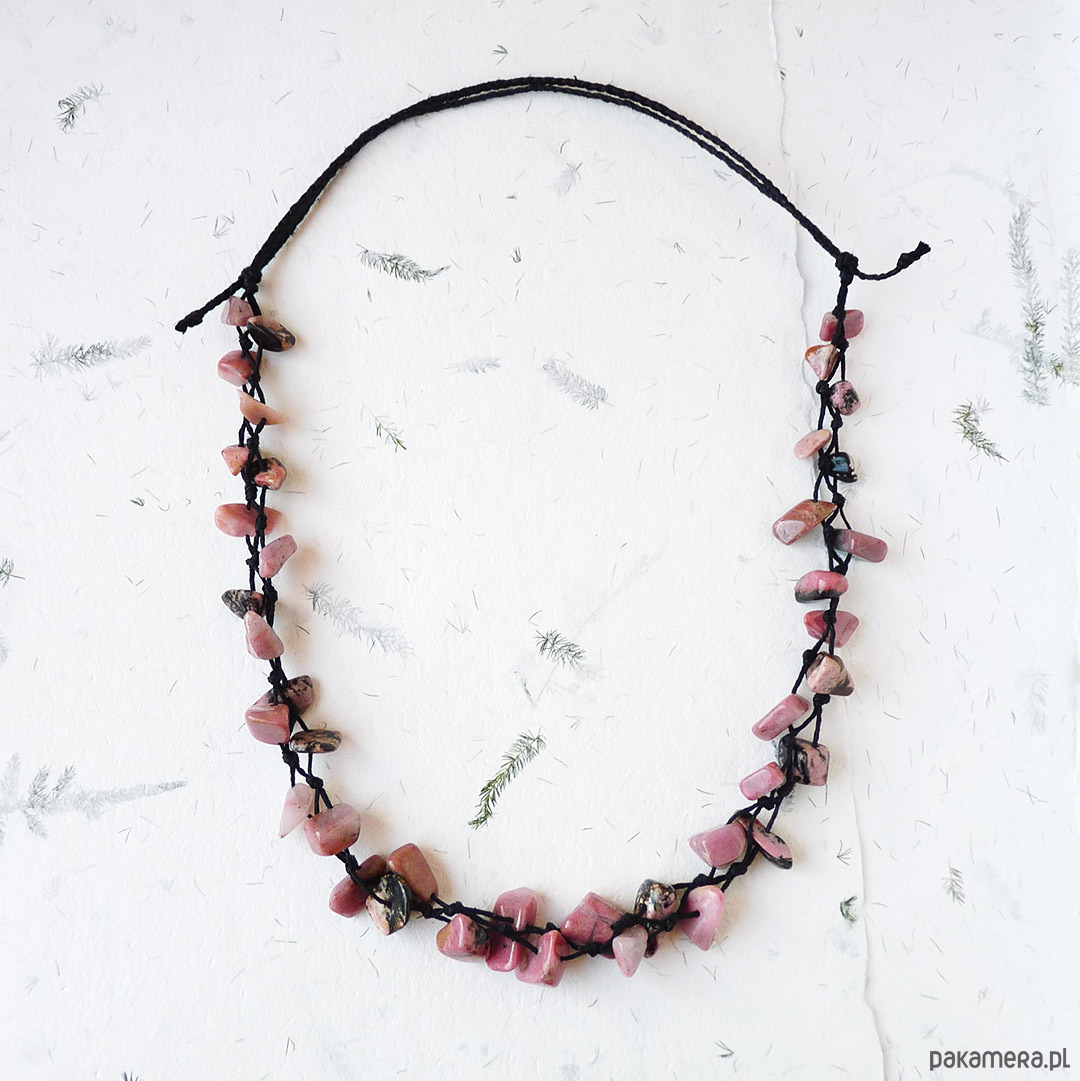 len czarny, rodonit nieregularne kamienie 7-17 mm