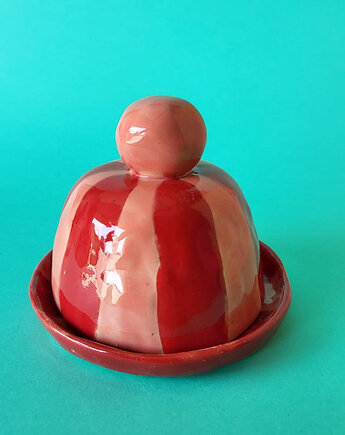 Ceramiczna maselniczka, małą, na pół kostki - pojemnik różowo czerwony
