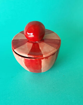 Piękna ceramiczna cukiernica, cukierniczka - różowo czerwona handmade