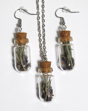 Srebrny komplet biżuterii niebieskie prawdziwe kwiaty wisiorek kolczyki