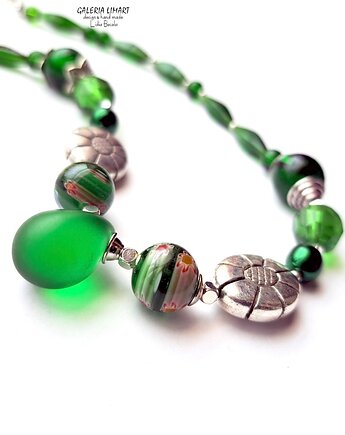Na zielono komplet: naszyjnik, bransoleta i kolczyki z czeskiego szkła handmade
