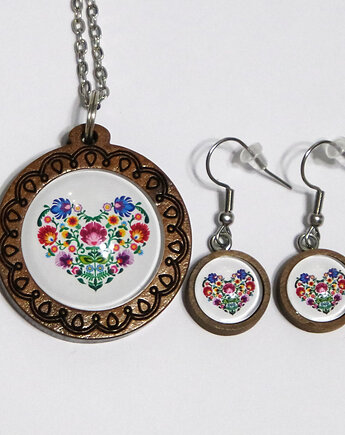 Komplet zawieszka i kolczyki srebrne kwiaty serduszka serca smagliczka