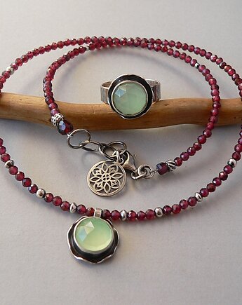Zoizyt i Rubin - komplet naszyjnik i bransoletka na nogę.