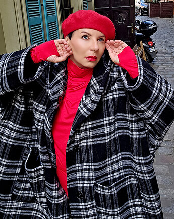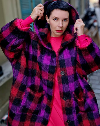 Bordowy PŁASZCZ /bawełniana BLUZA/ ciepły szlafrok, autorski wzór maliny