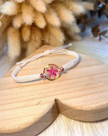 Pleciona bransoletka z różowym kwiatem