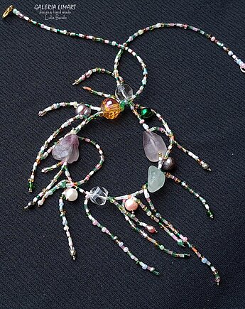 Naszyjnik boho z nutką vintage: minerały i drobniutkie koralik modny prezent