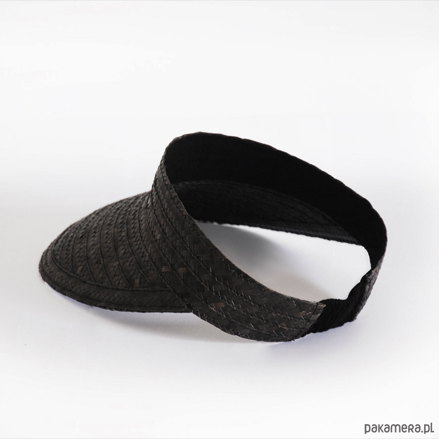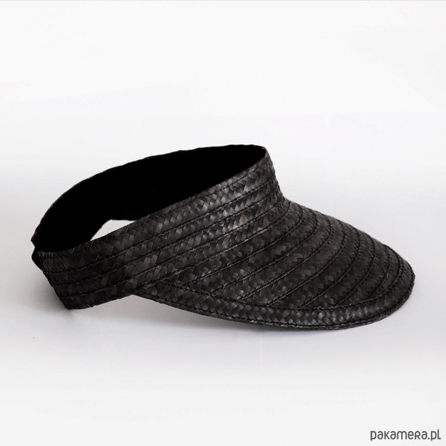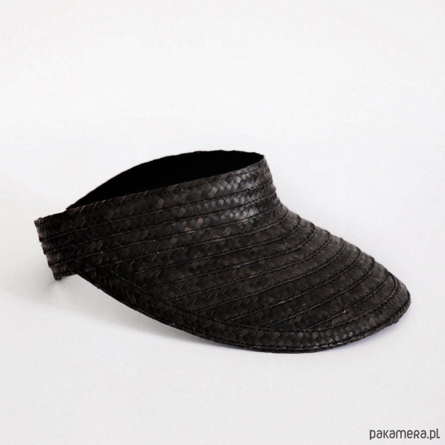 Daszek przeciwsłoneczny wykonany ręcznie z naturalnego rattanu w czarnym odcieniu.