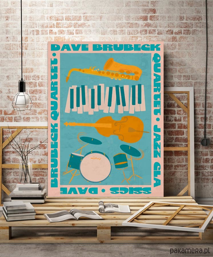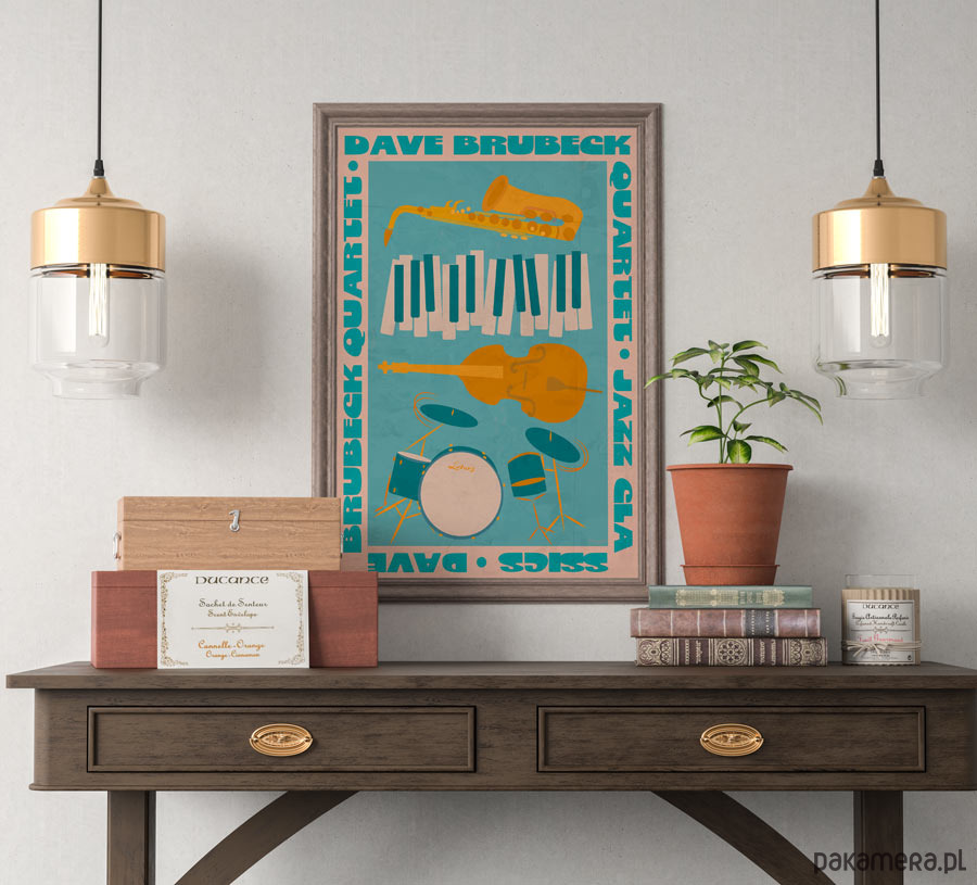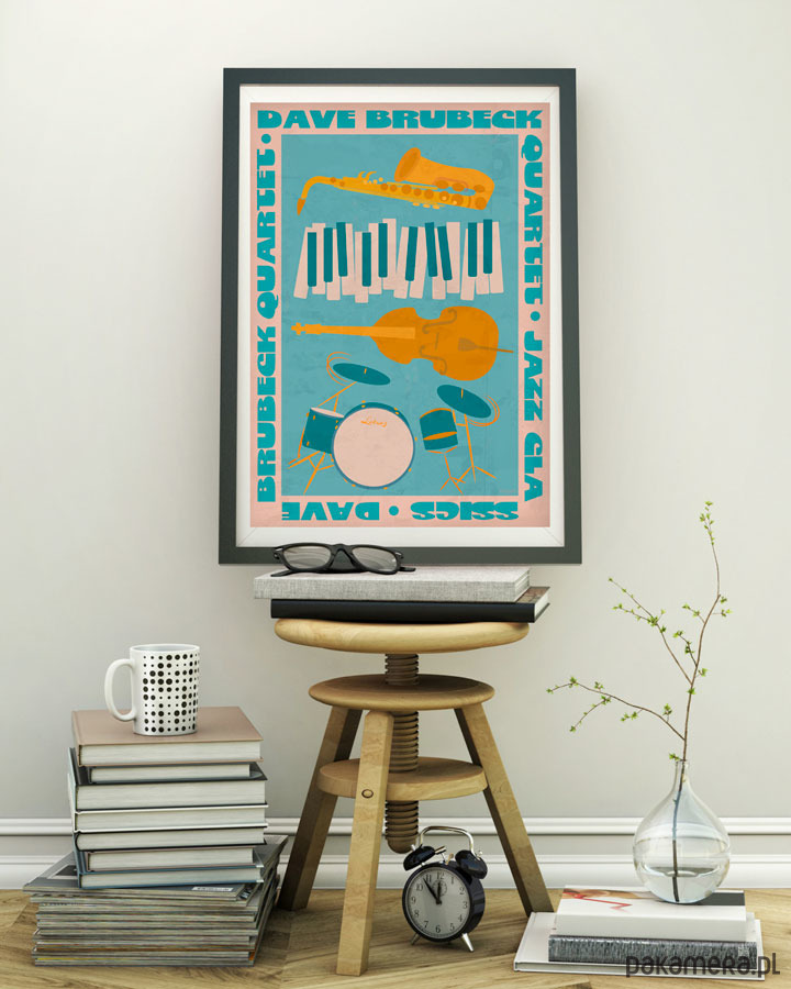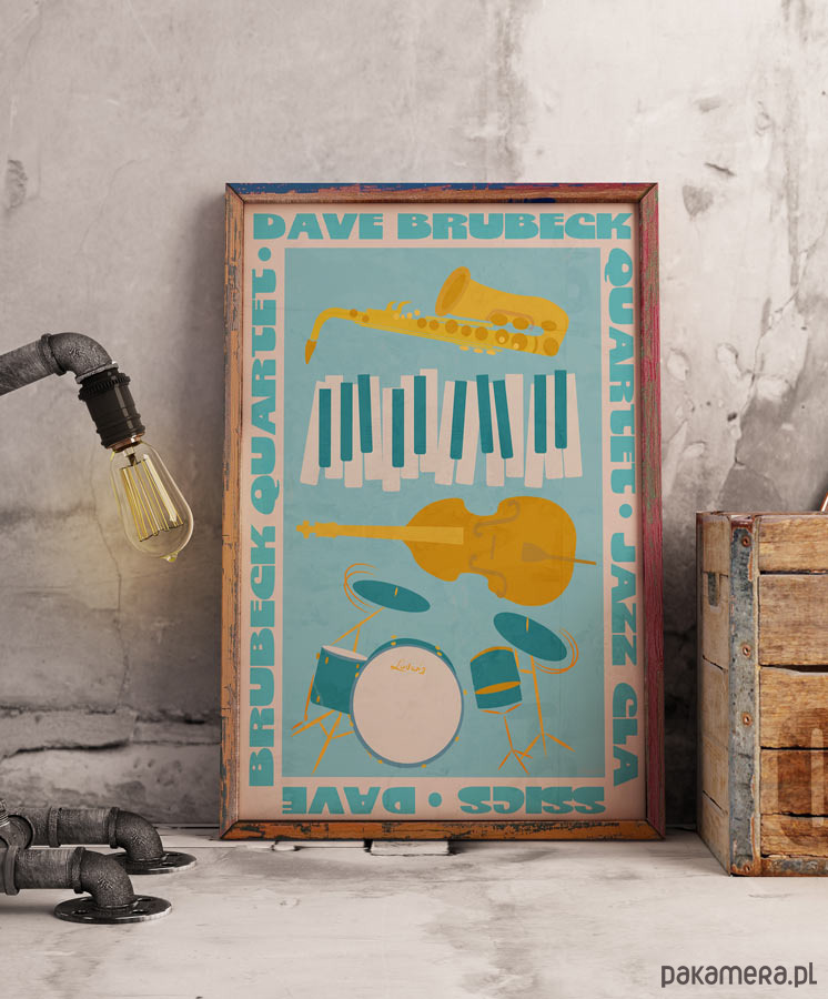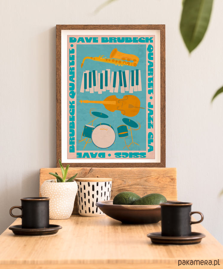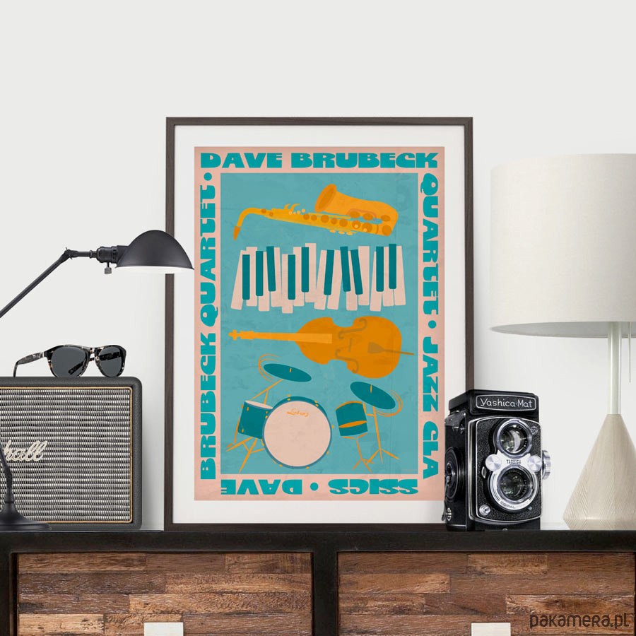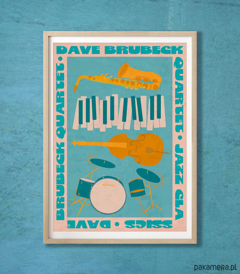 Plakat z autorską grafiką inspirowany legendarnym kwartetem jazzowym - Dave Brubeck Quartet.
