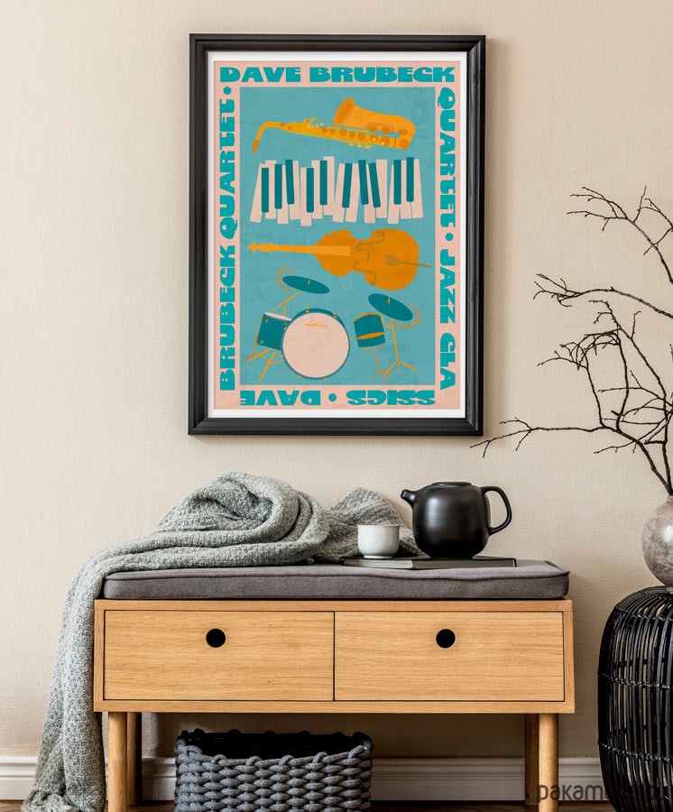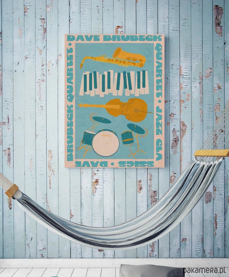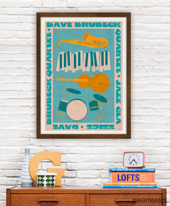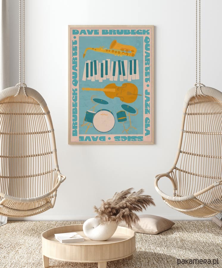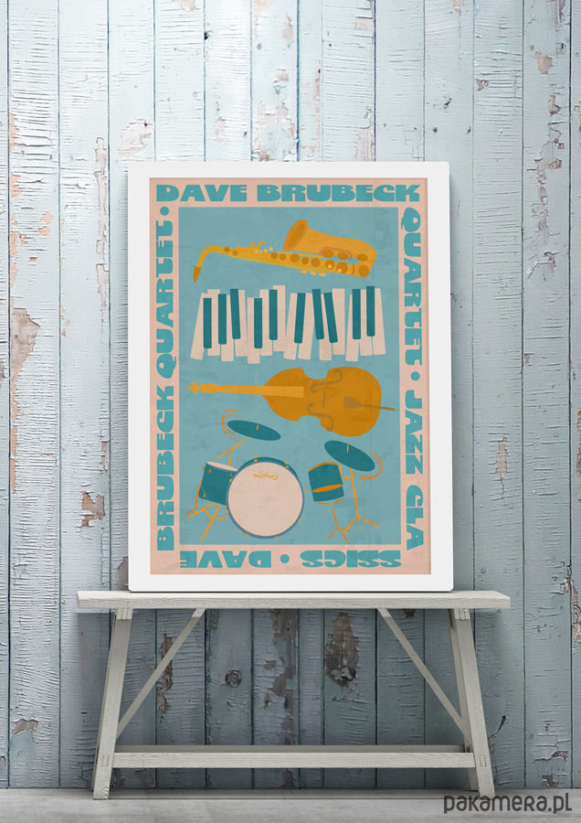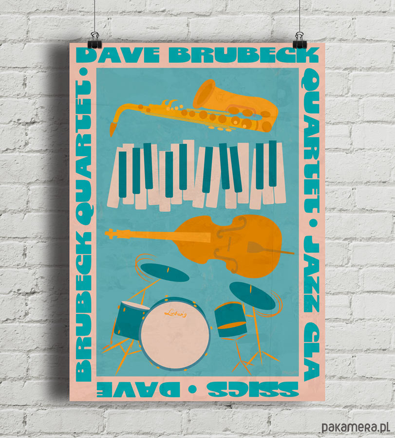 Plakat z autorską grafiką inspirowany legendarnym kwartetem jazzowym - Dave Brubeck Quartet.