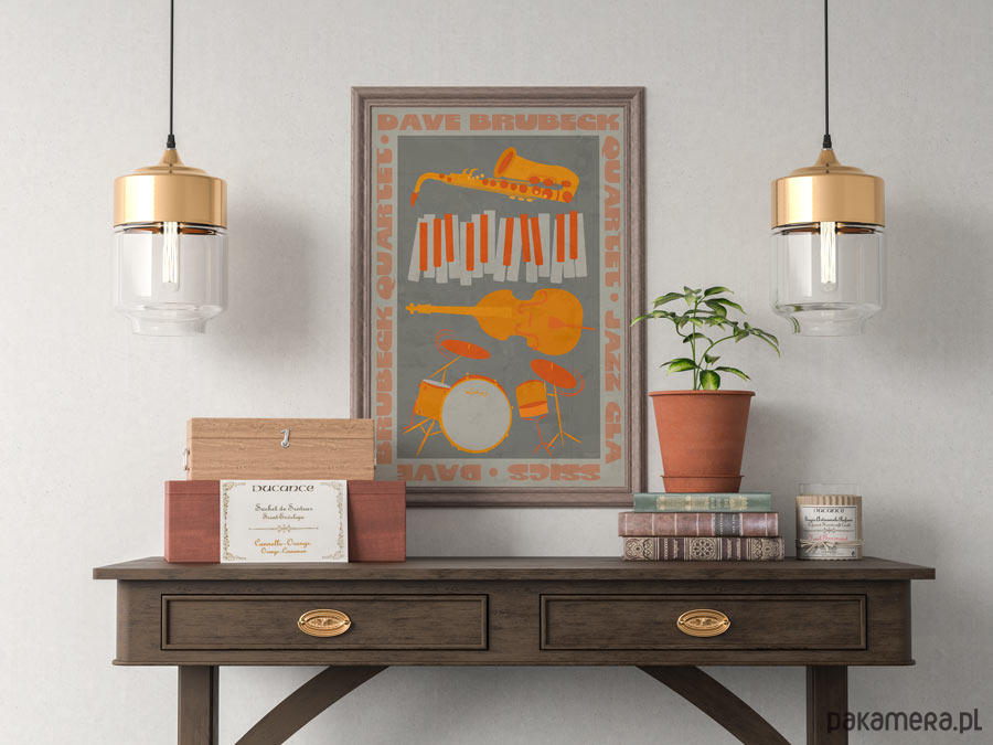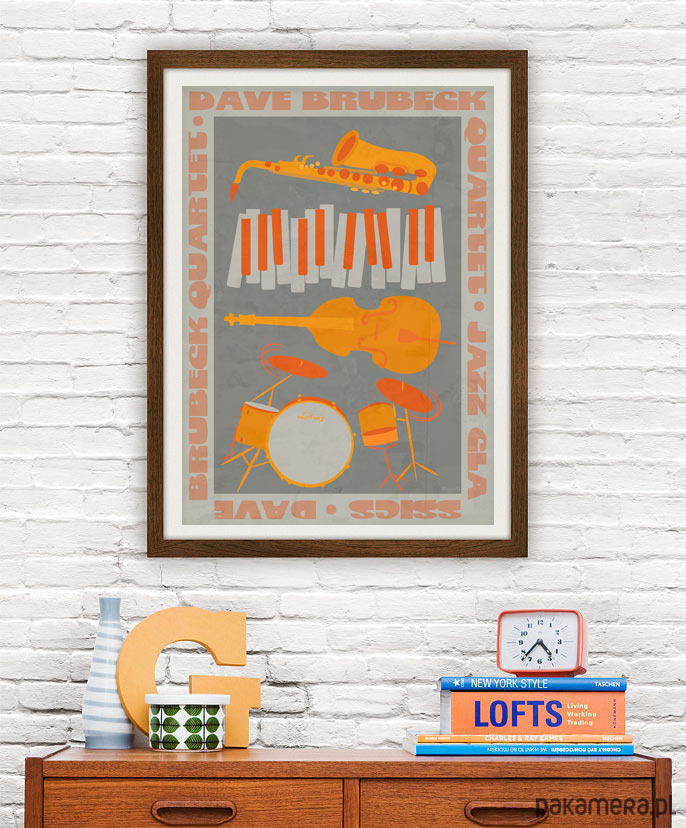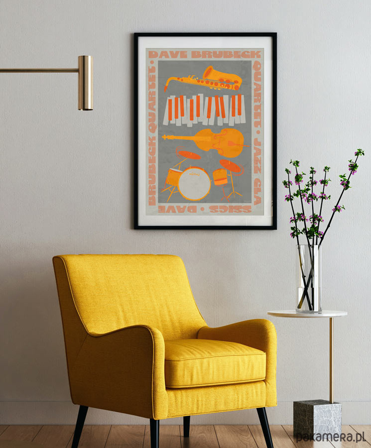 Plakat z autorską grafiką inspirowany legendarnym kwartetem jazzowym - Dave Brubeck Quartet.
