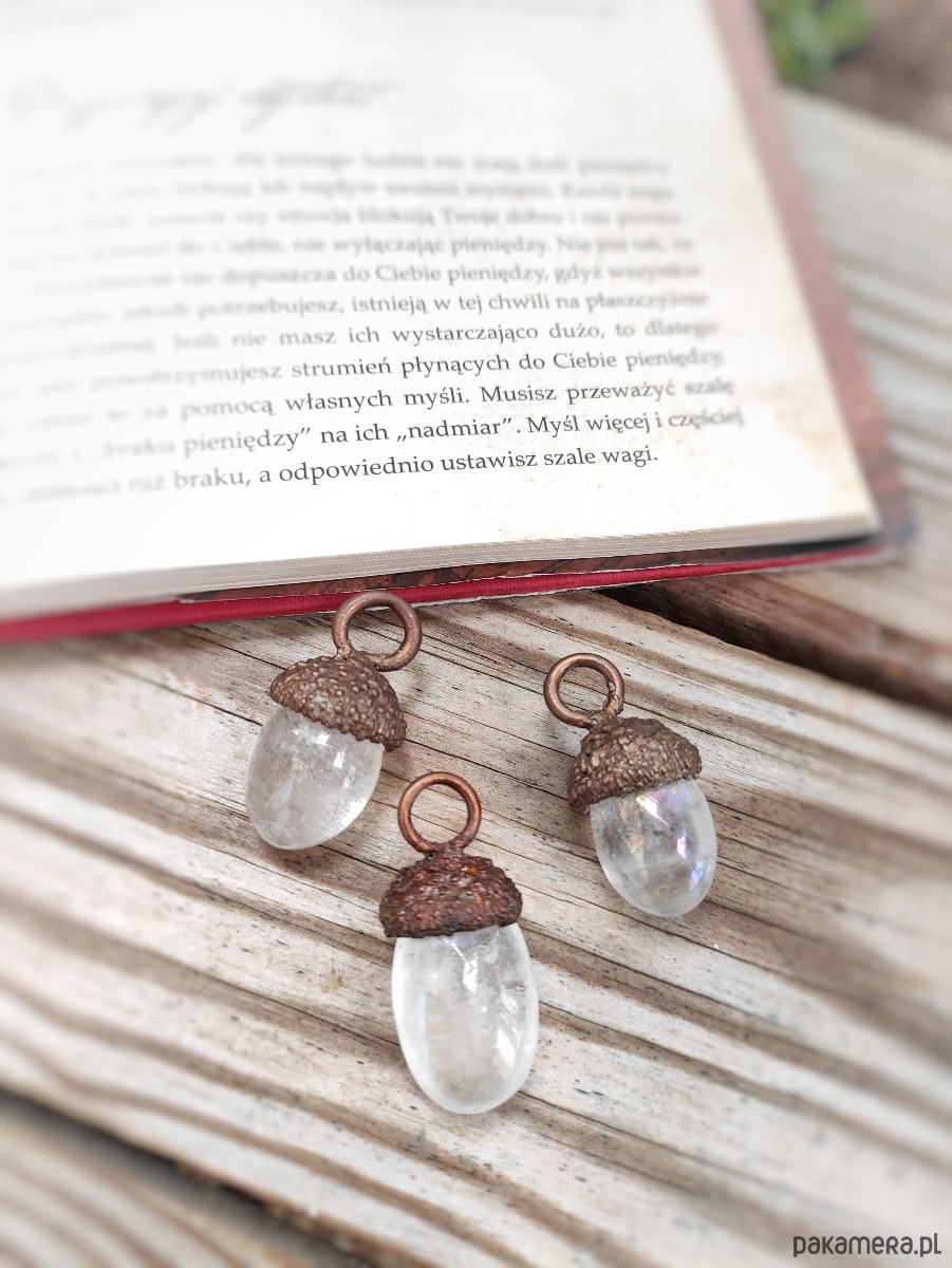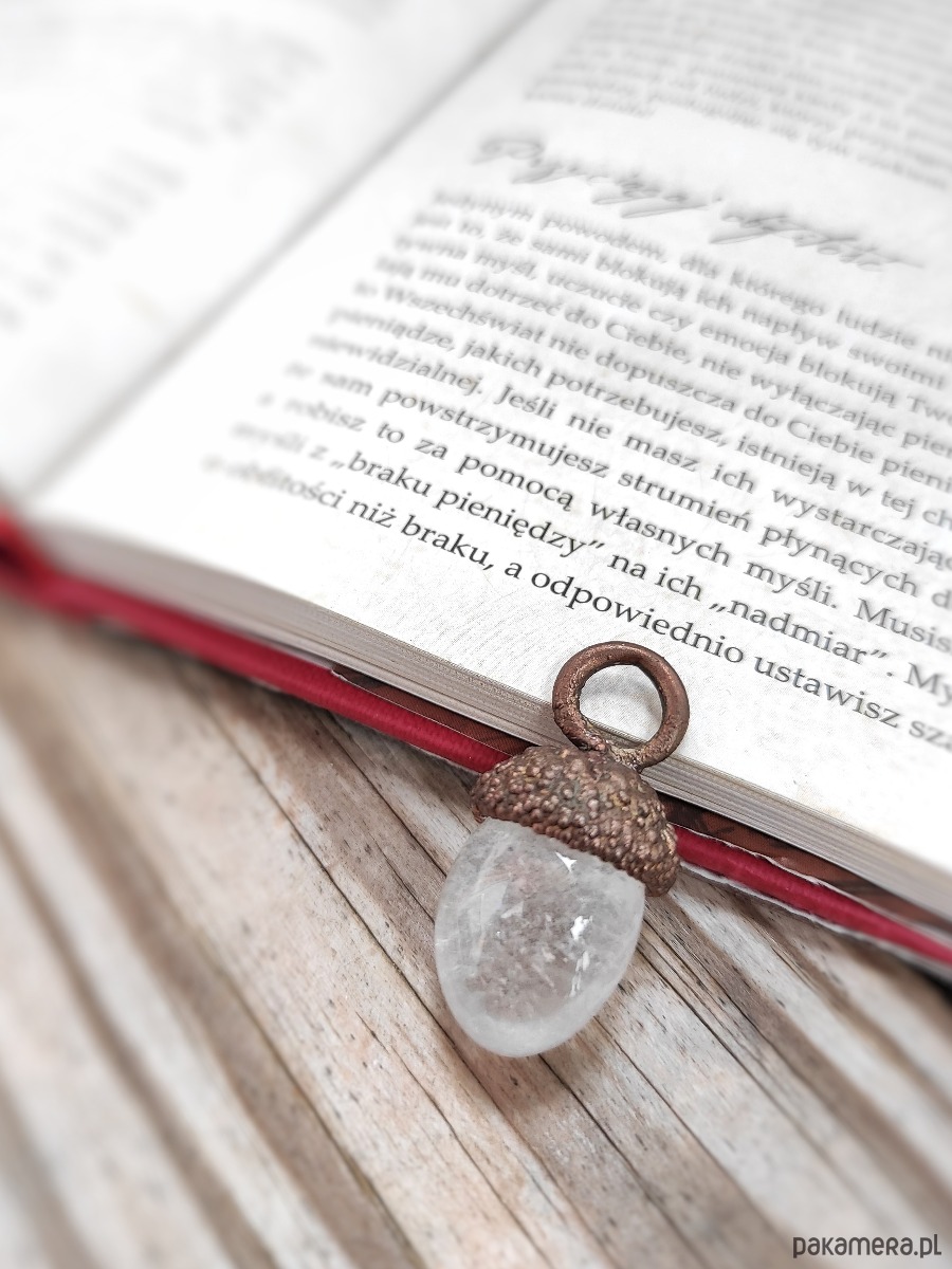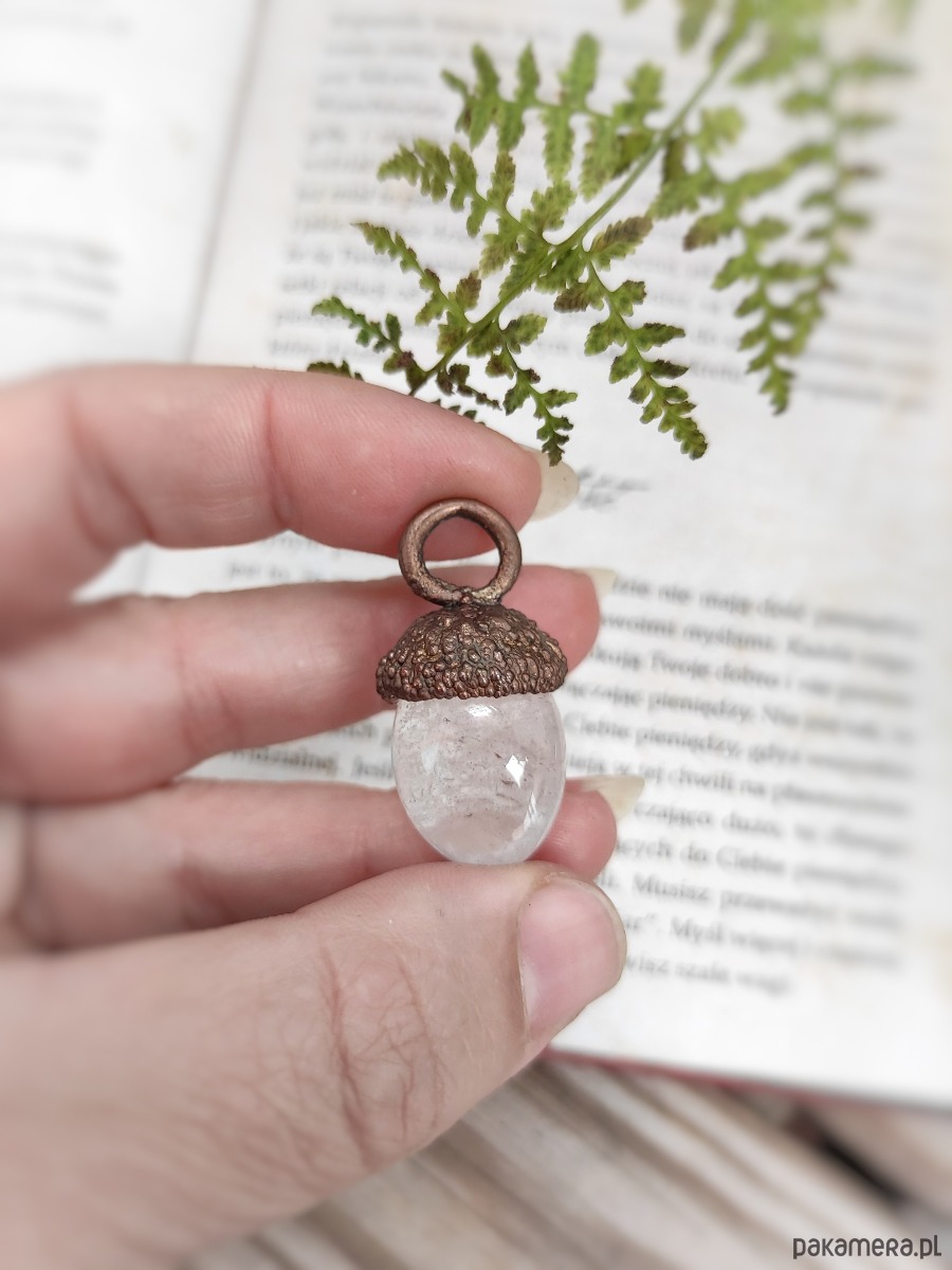 Żołądź od wieków oznacza siłę i wzrost, miedź wspomaga intuicję, a kryształ aura harmonizuje energię. To talizman równowagi i inspiracji.