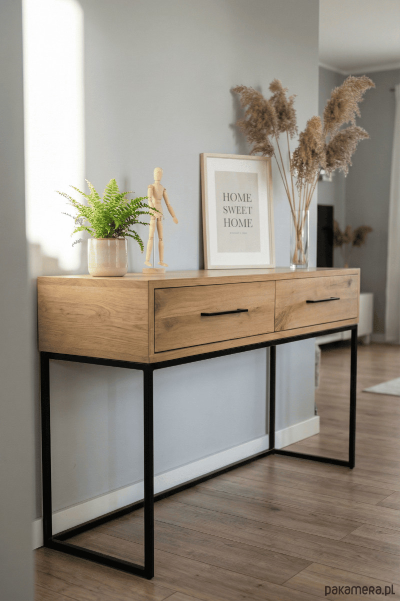 Konsola Dębowa z 2 Szufladami – Nowoczesny Minimalizm
