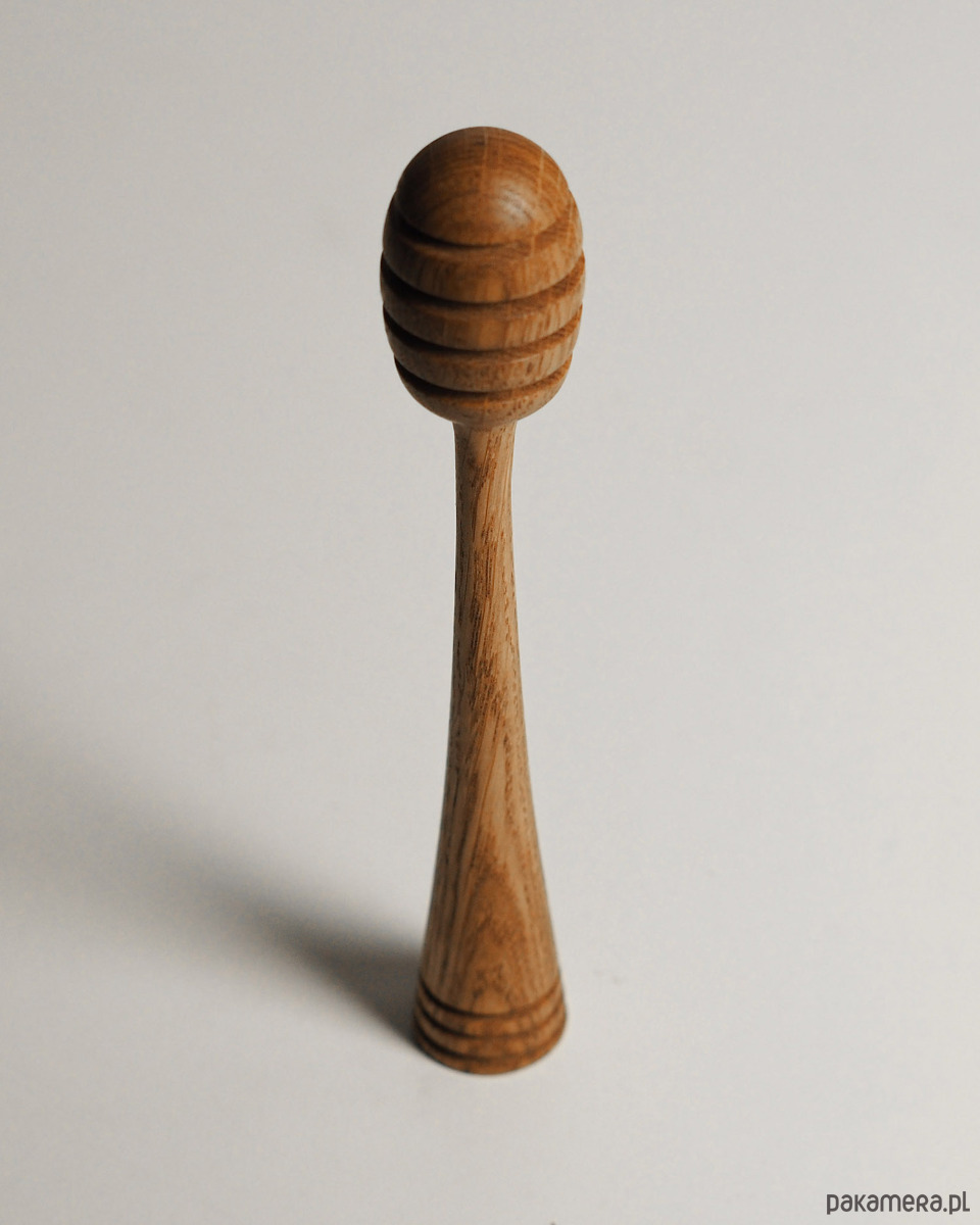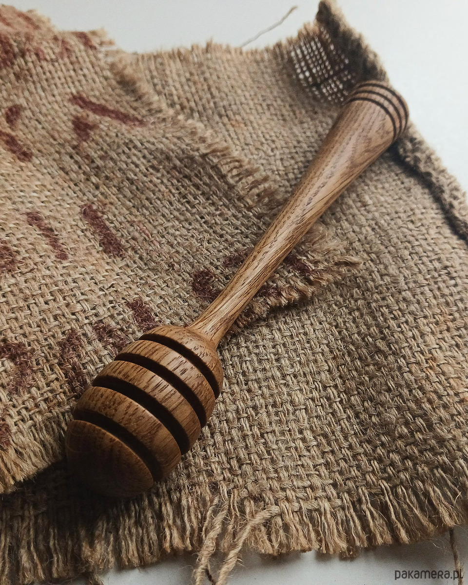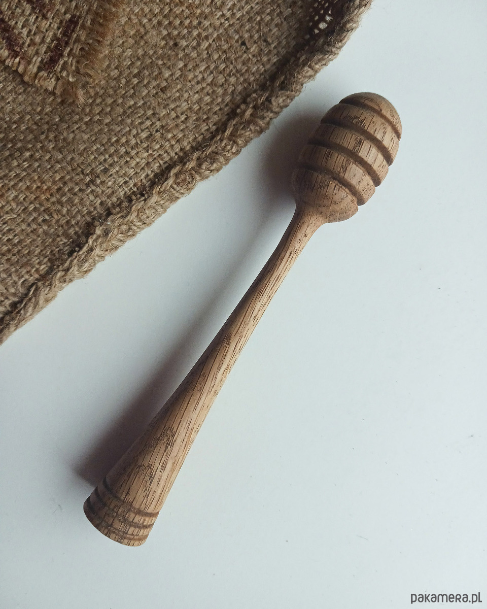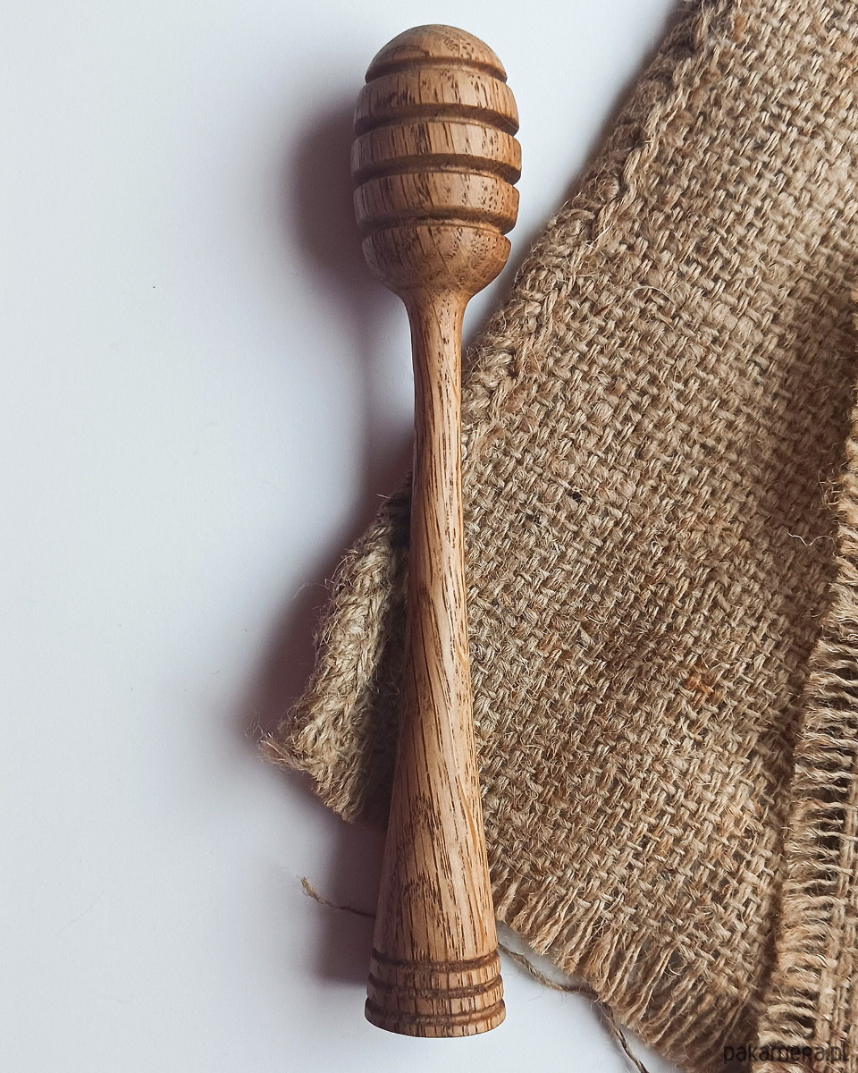 Miodowniki ręcznie toczone z jednego kawałka drewna dębowego. Specjalnie głębokie rowki pozwalają na precyzyjne nabieranie i dozowanie miodu, co czyni go idealnym towarzyszem do herbaty, gofrów czy owsianki :)