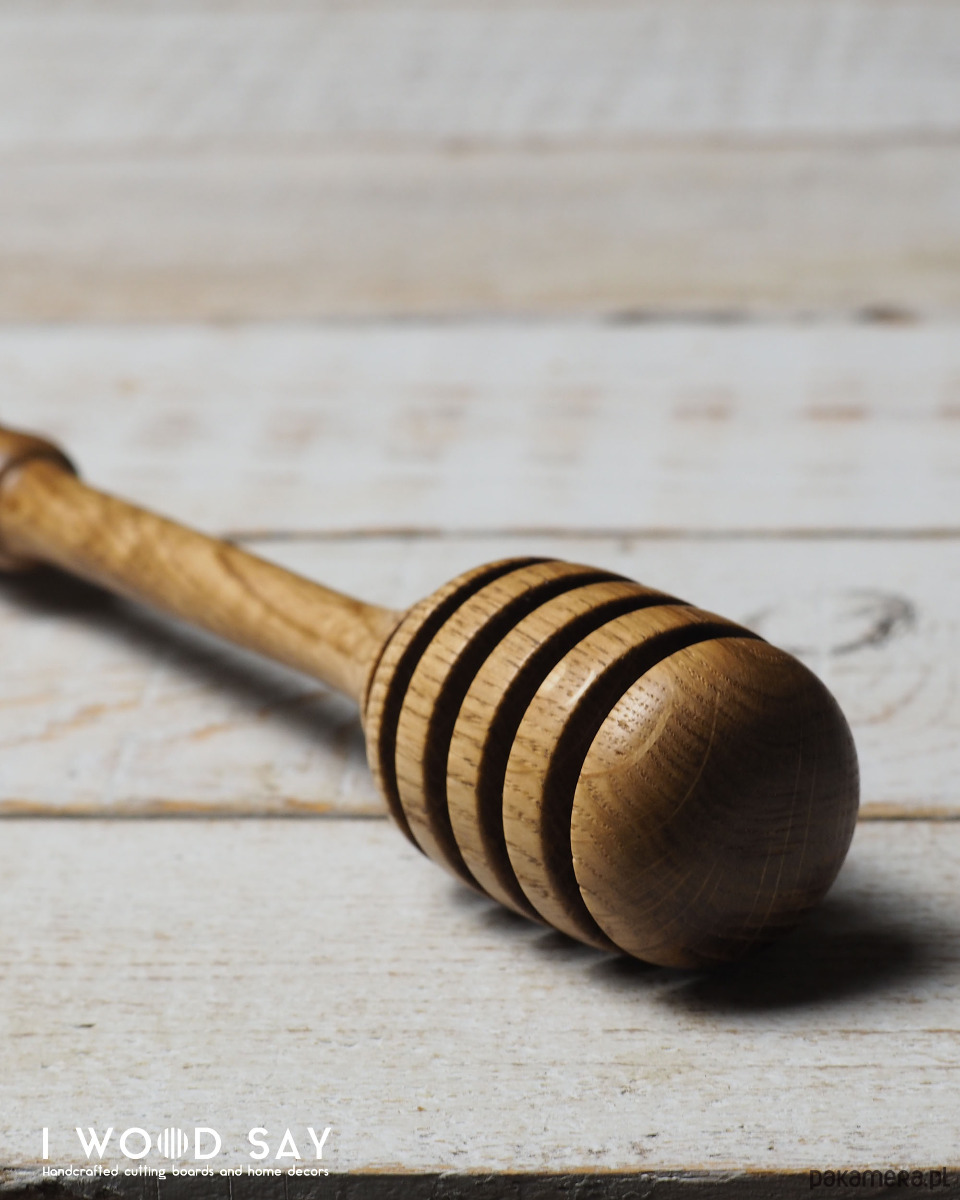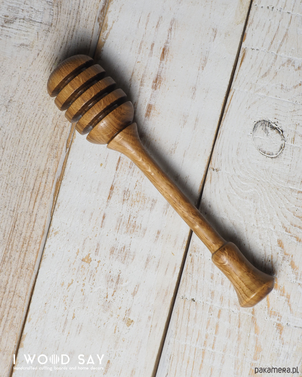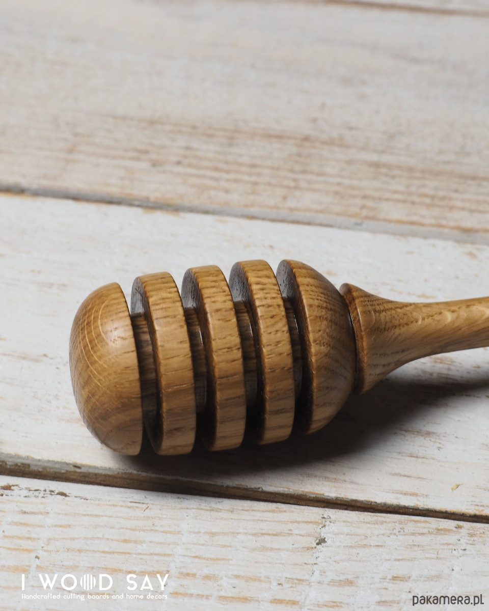 Solidny, zakończony wygodnym uchwytem, dzięki czemu miód trafi prosto do filiżanki, a nie na stół ;)