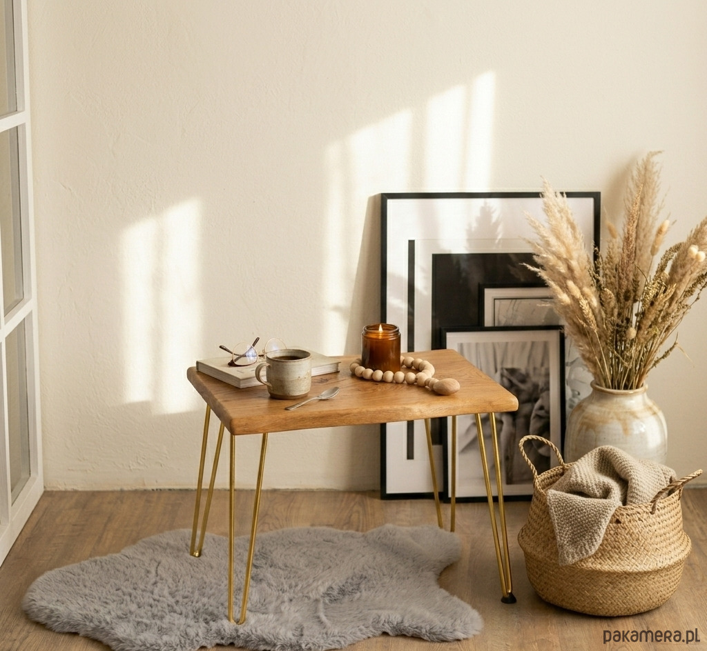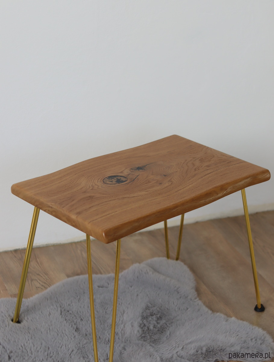 Prezentujemy wyjątkowy stolik kawowy, który łączy w sobie surowość stuletniego dębu z biżuteryjną elegancją złota. To mebel stworzony dla miłośników autentyczności, którzy w swoim wnętrzu szukają przedmiotów "z charakterem".