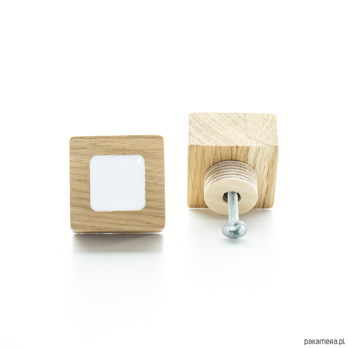 Dębowy uchwyt meblowy kwadrat biały