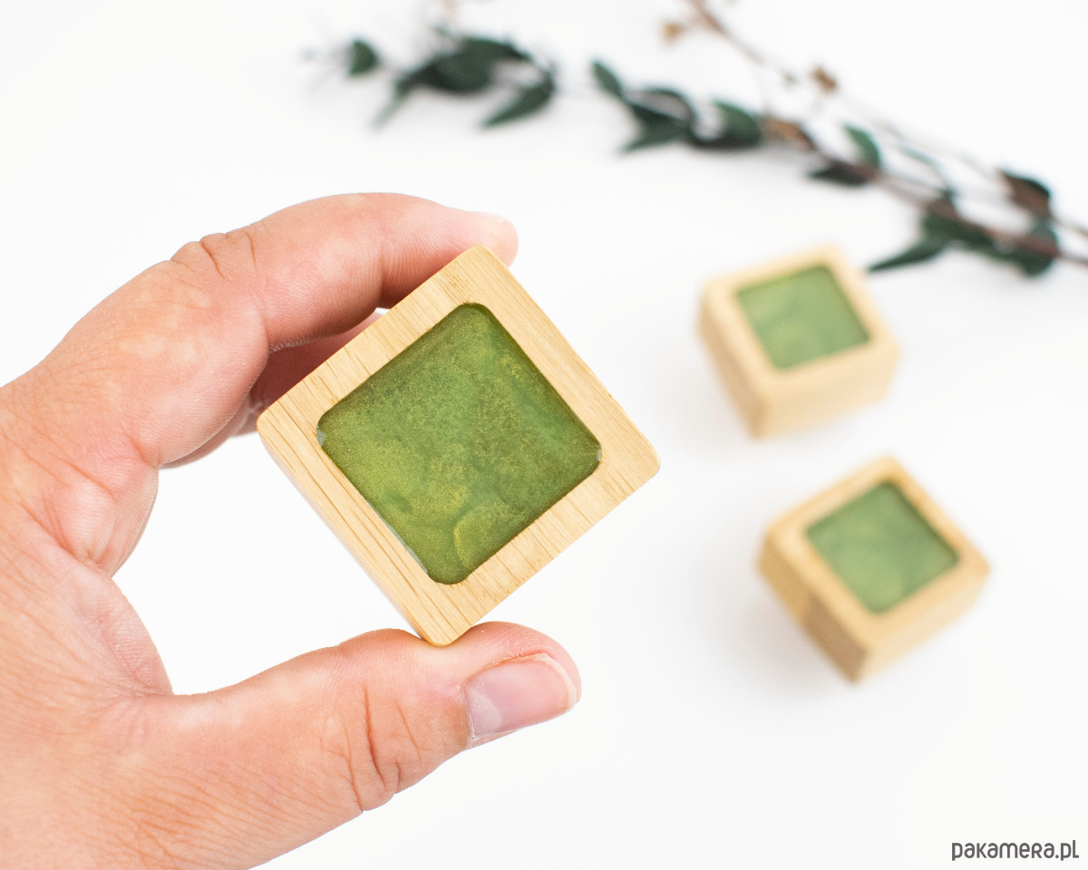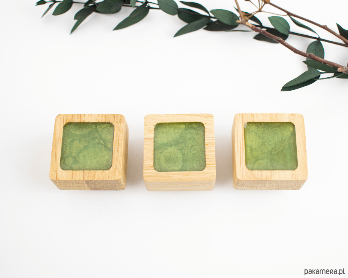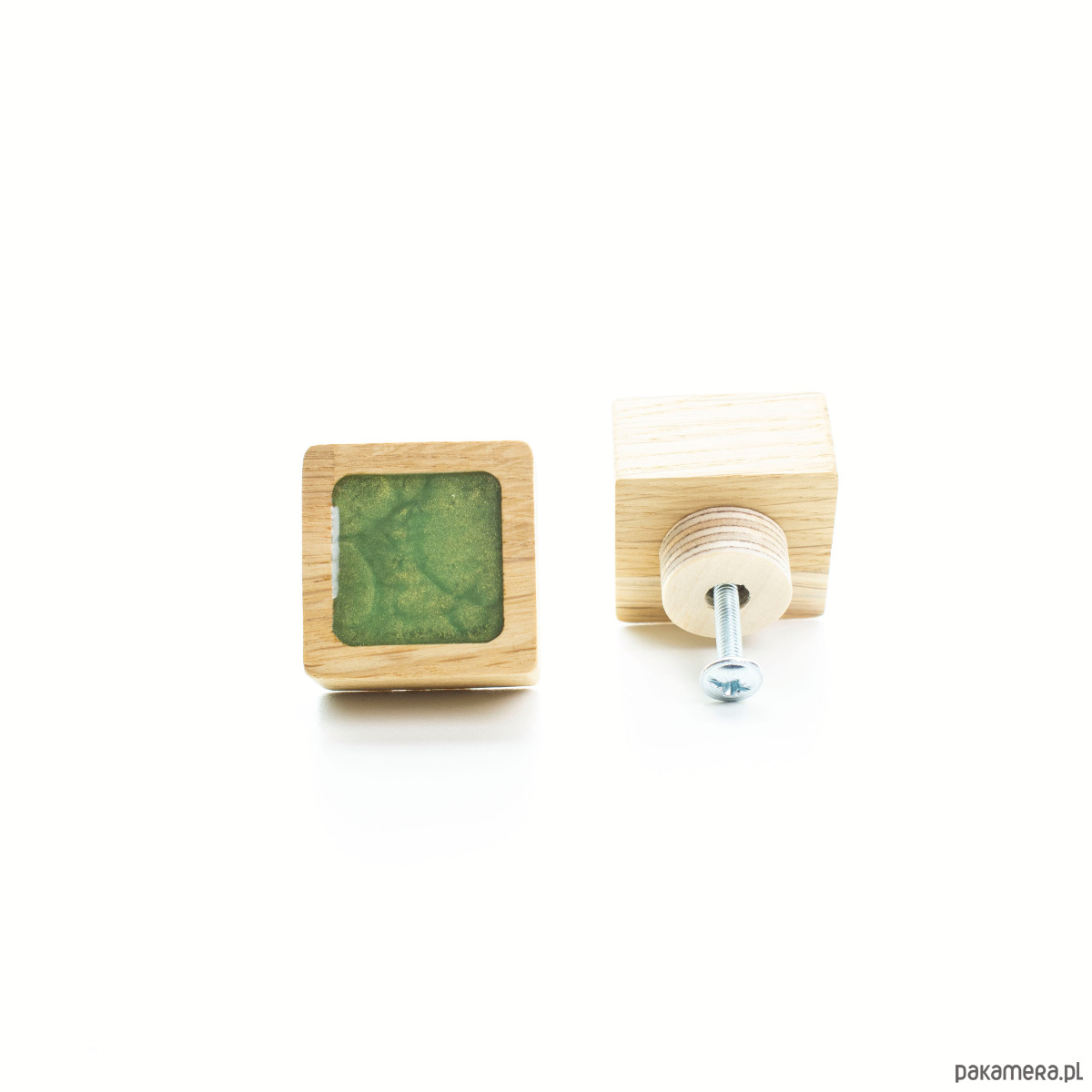 Dębowy uchwyt meblowy kwadrat perłowy zielony