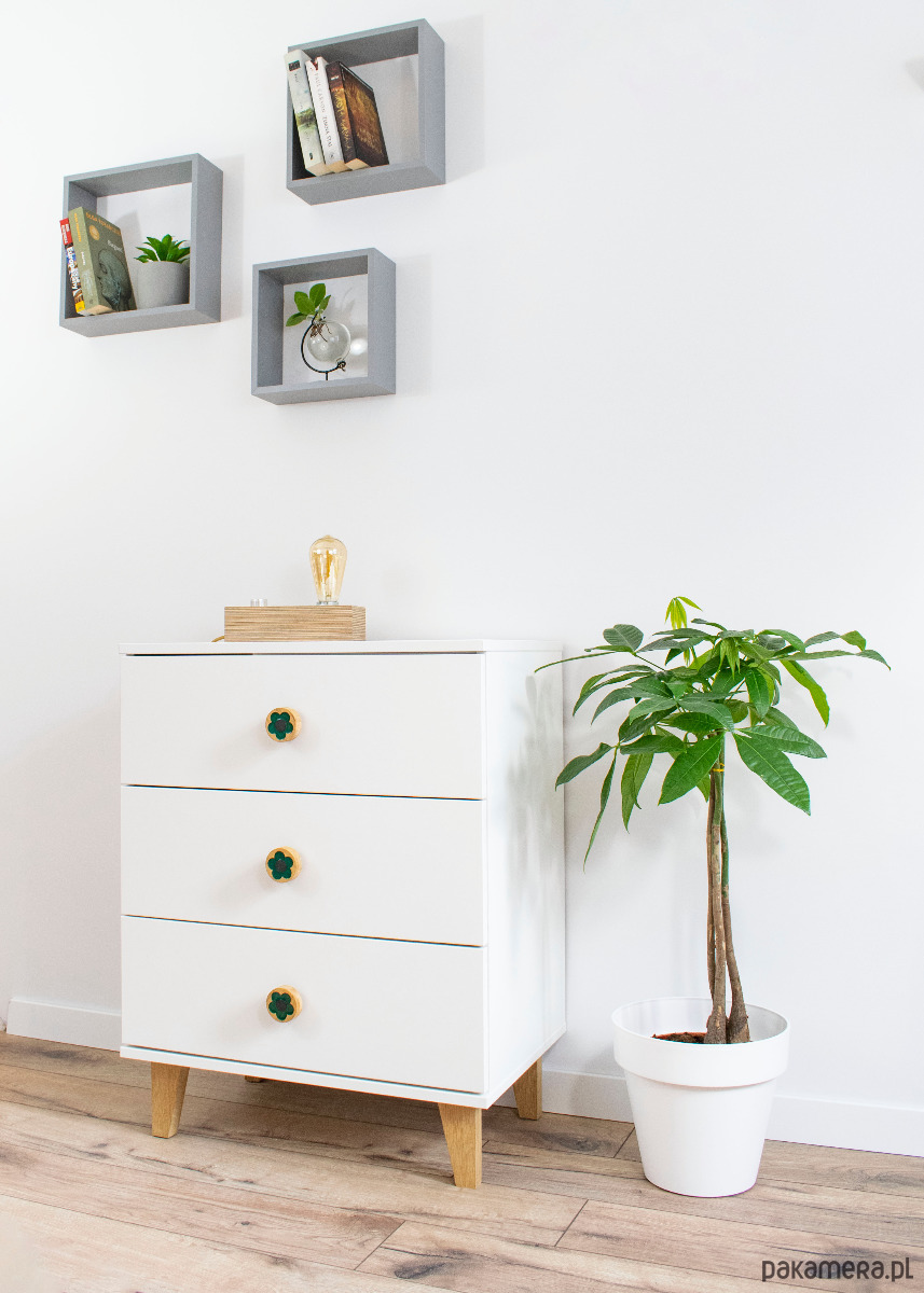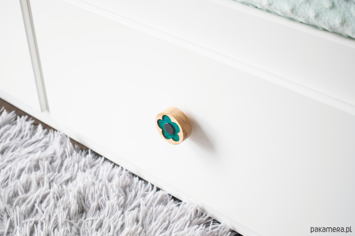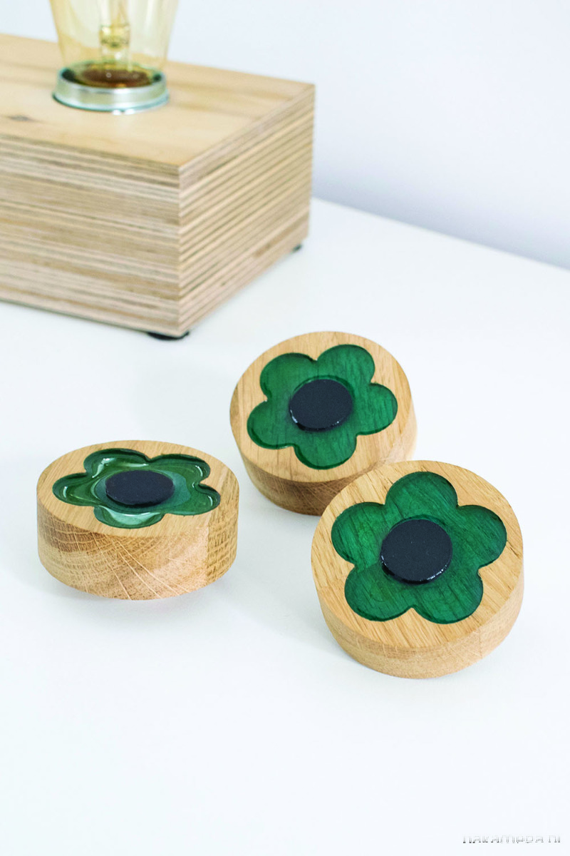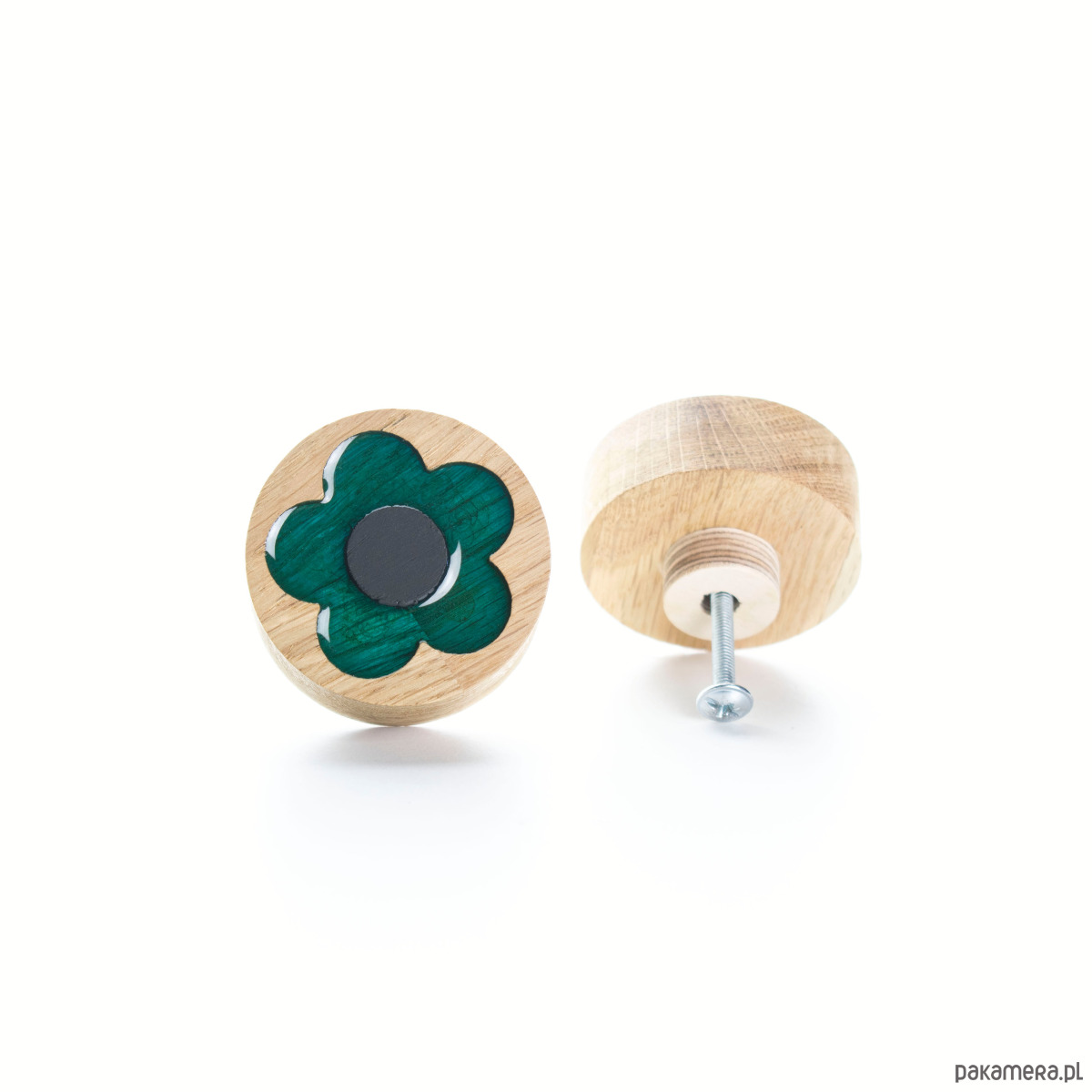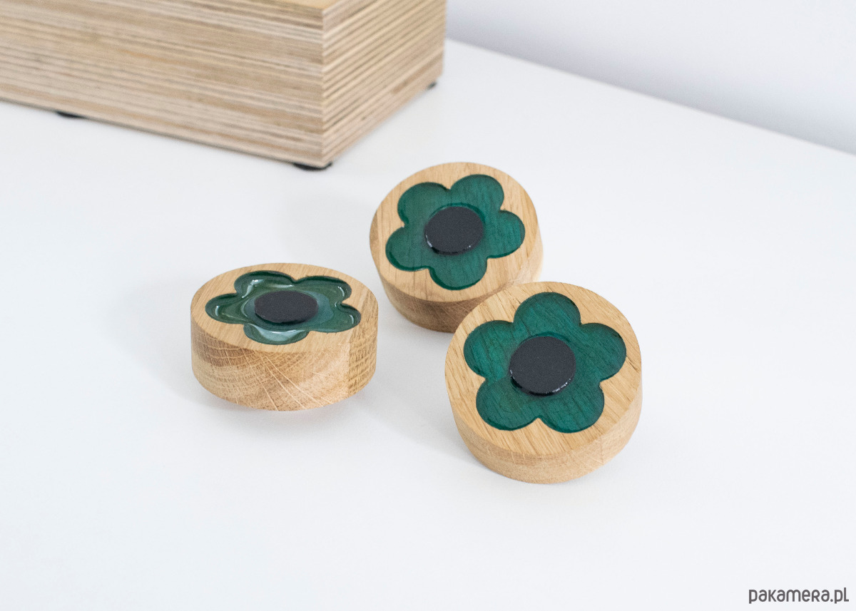 Uchwyt meblowy wykonany z drewna dębowego i żywicy epoksydowej.