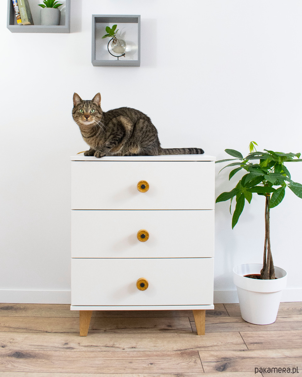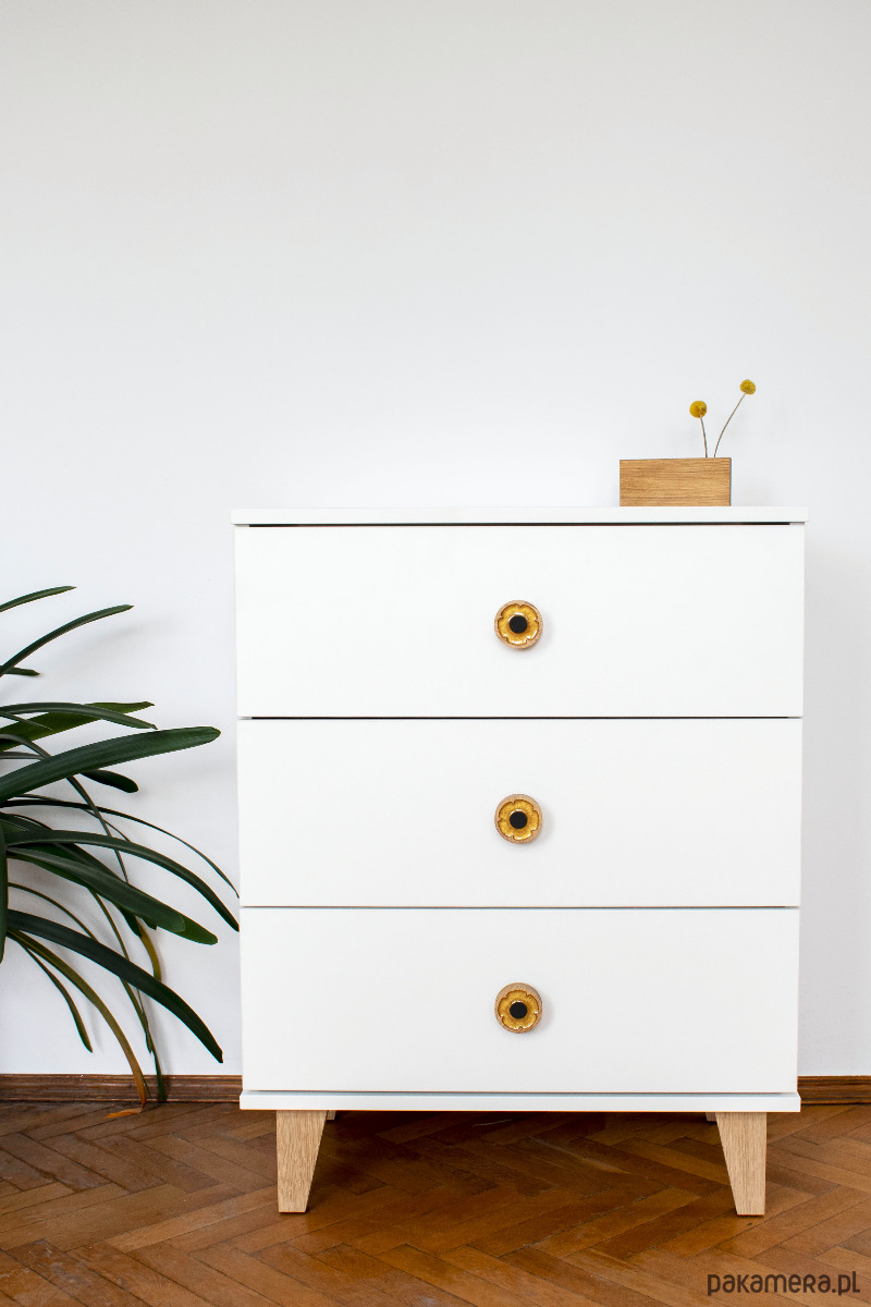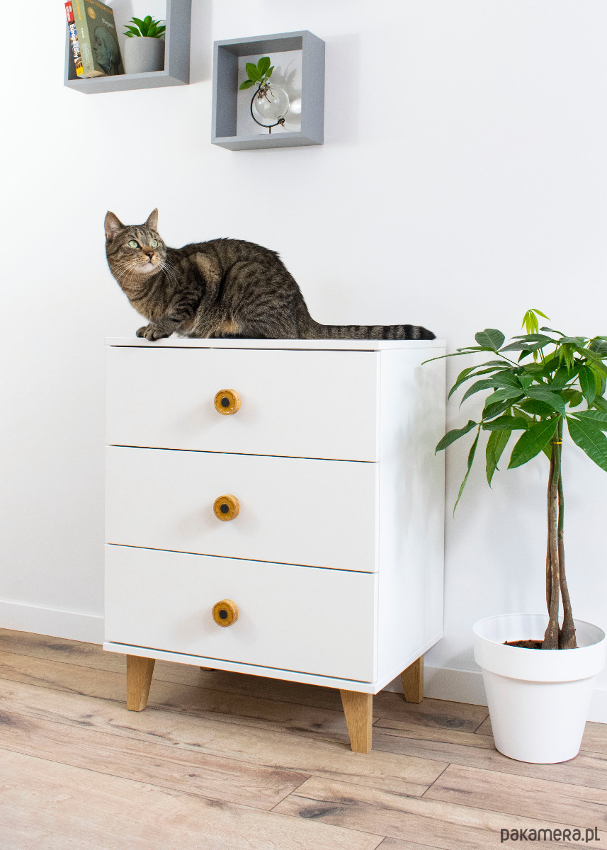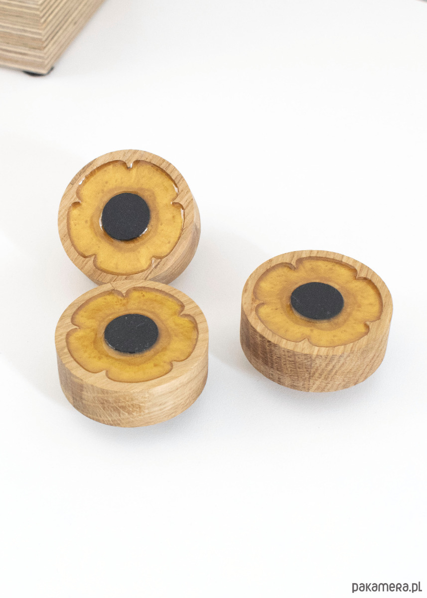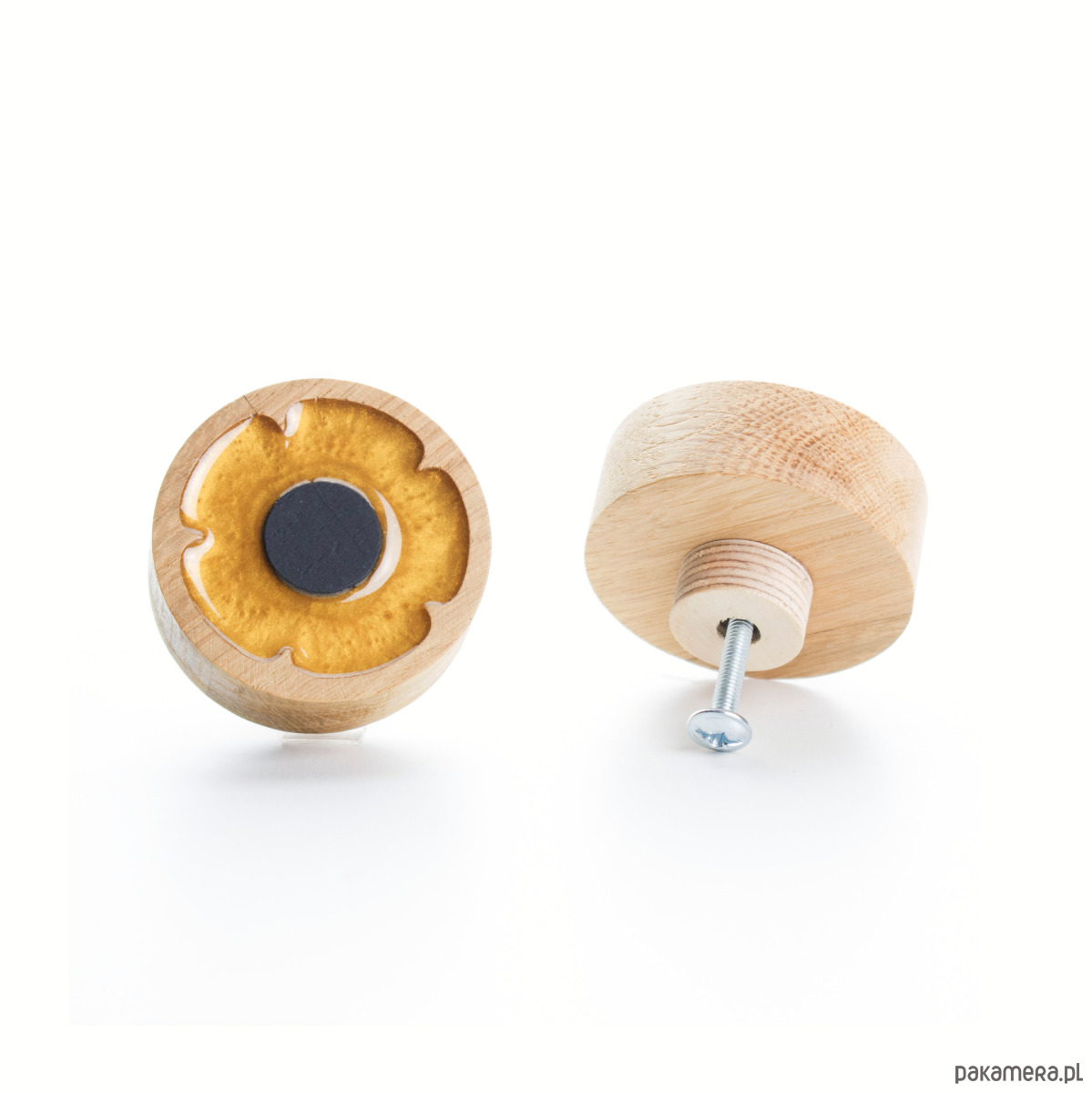 Uchwyt meblowy wykonany z drewna dębowego i żywicy epoksydowej.
