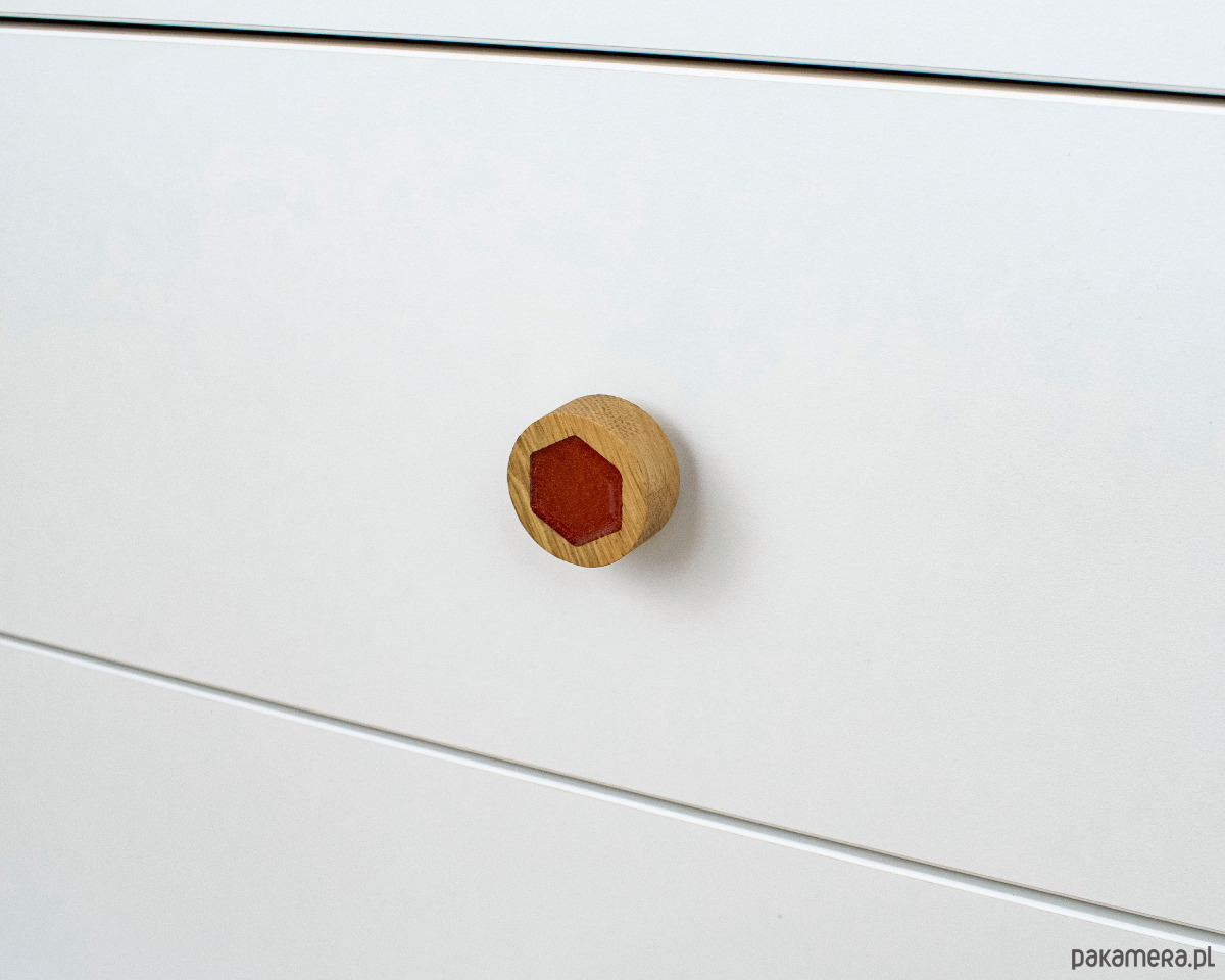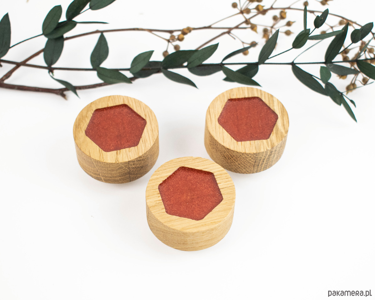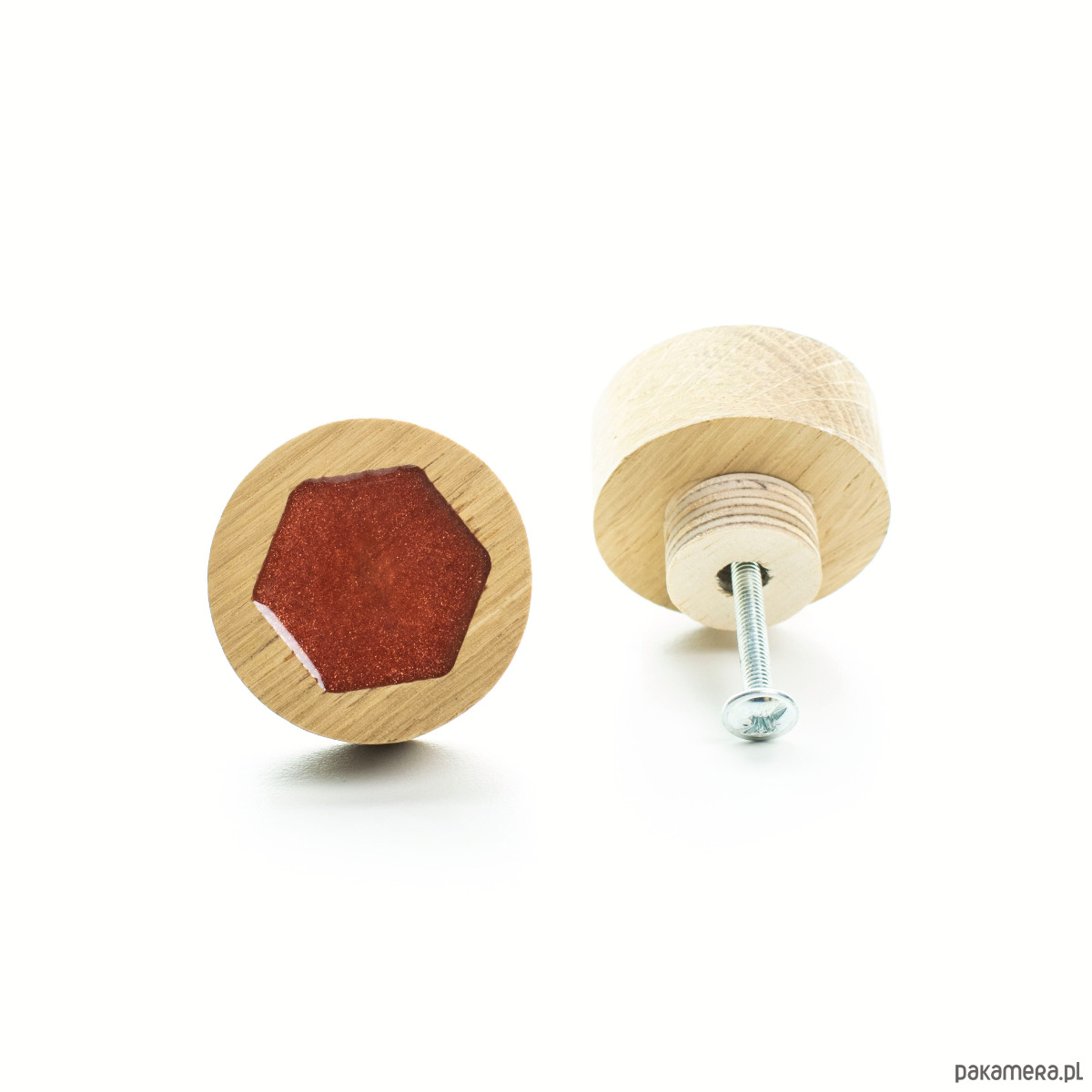 Dębowy uchwyt meblowy okrągły miedziany perłowy heksagon