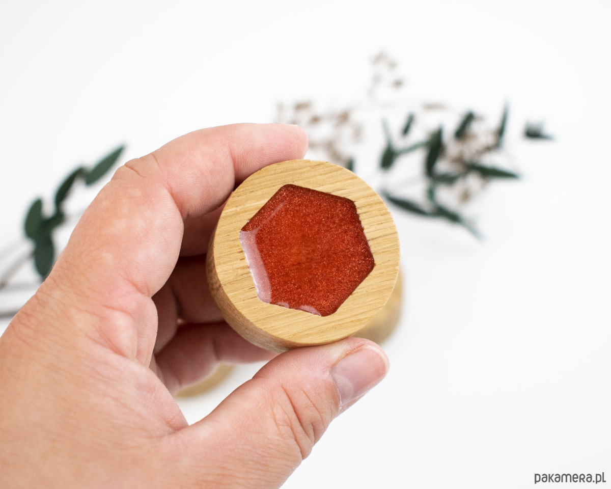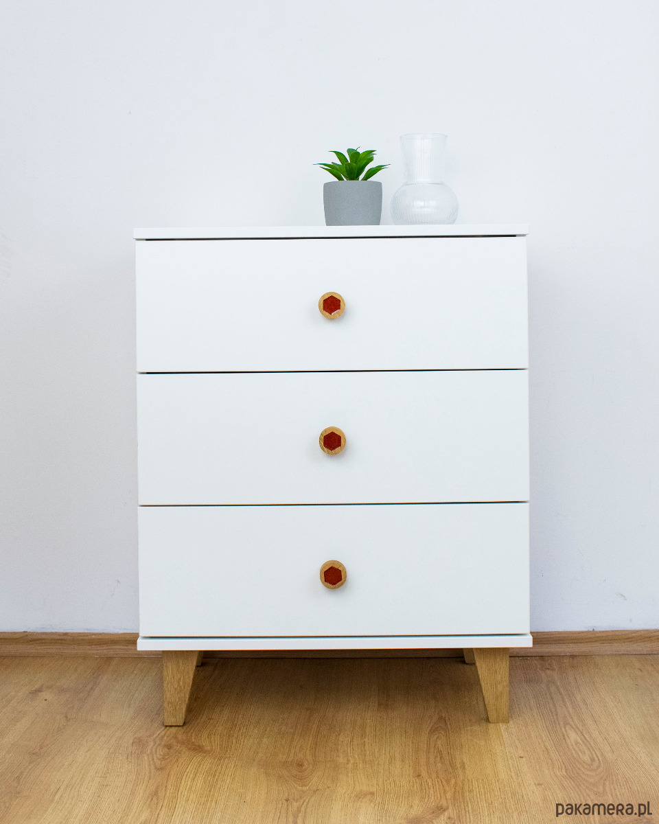Uchwyt meblowy wykonany z drewna dębowego i żywicy epoksydowej.