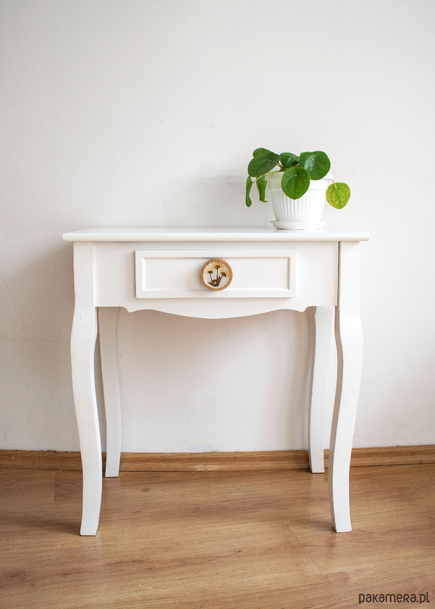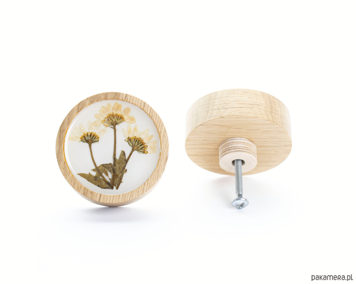 Dębowy uchwyt meblowy z białymi kwiatkami