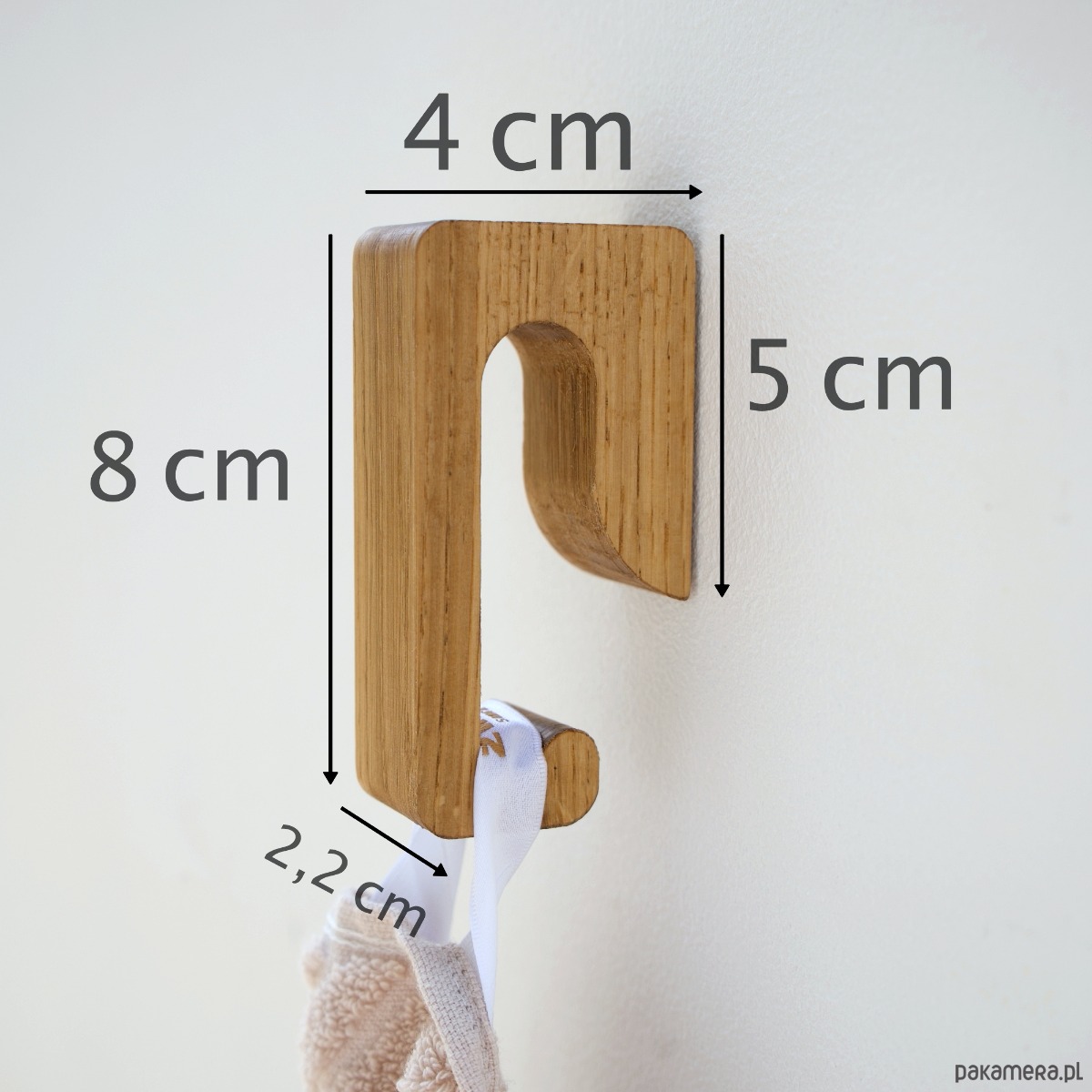 Dębowy wieszak haczyk na ręczniki (wersja samoprzylepna oraz na kołek)