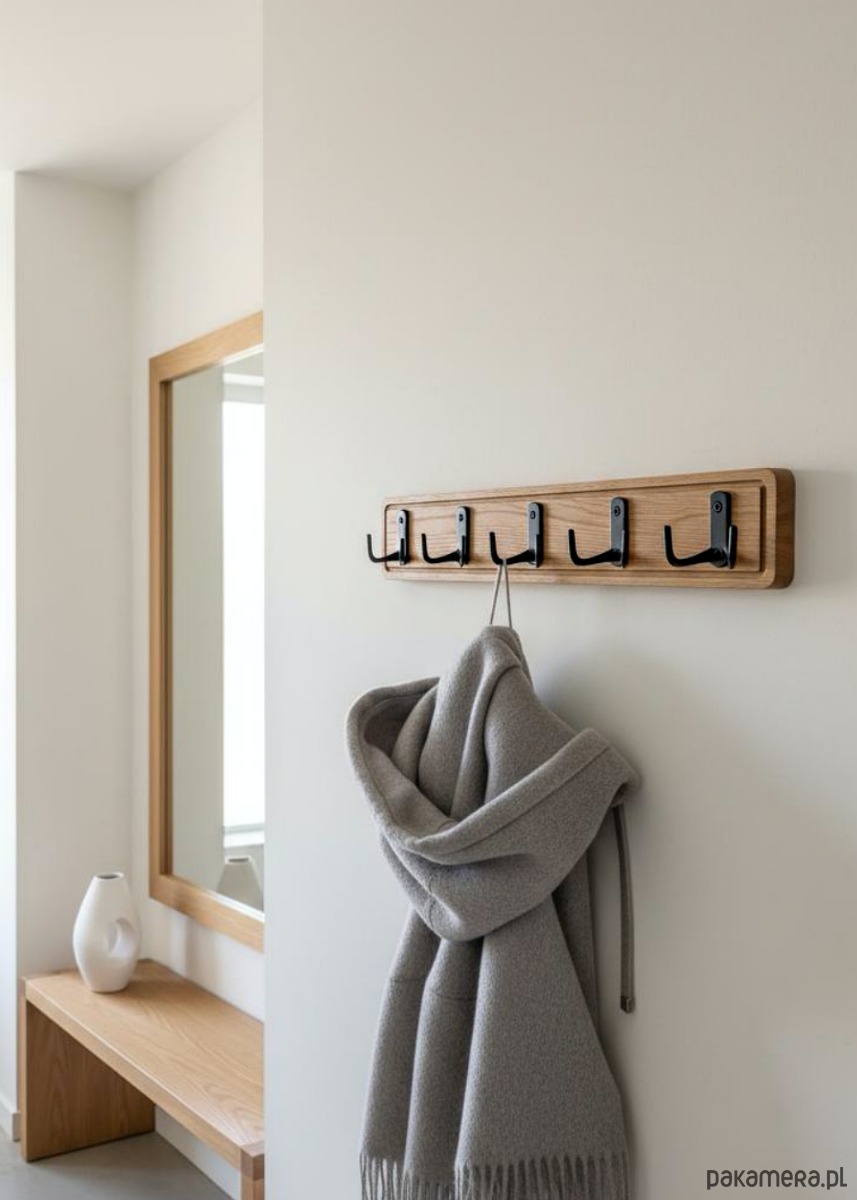 Dębowy wieszak ścienny na kurtki do przedpokoju