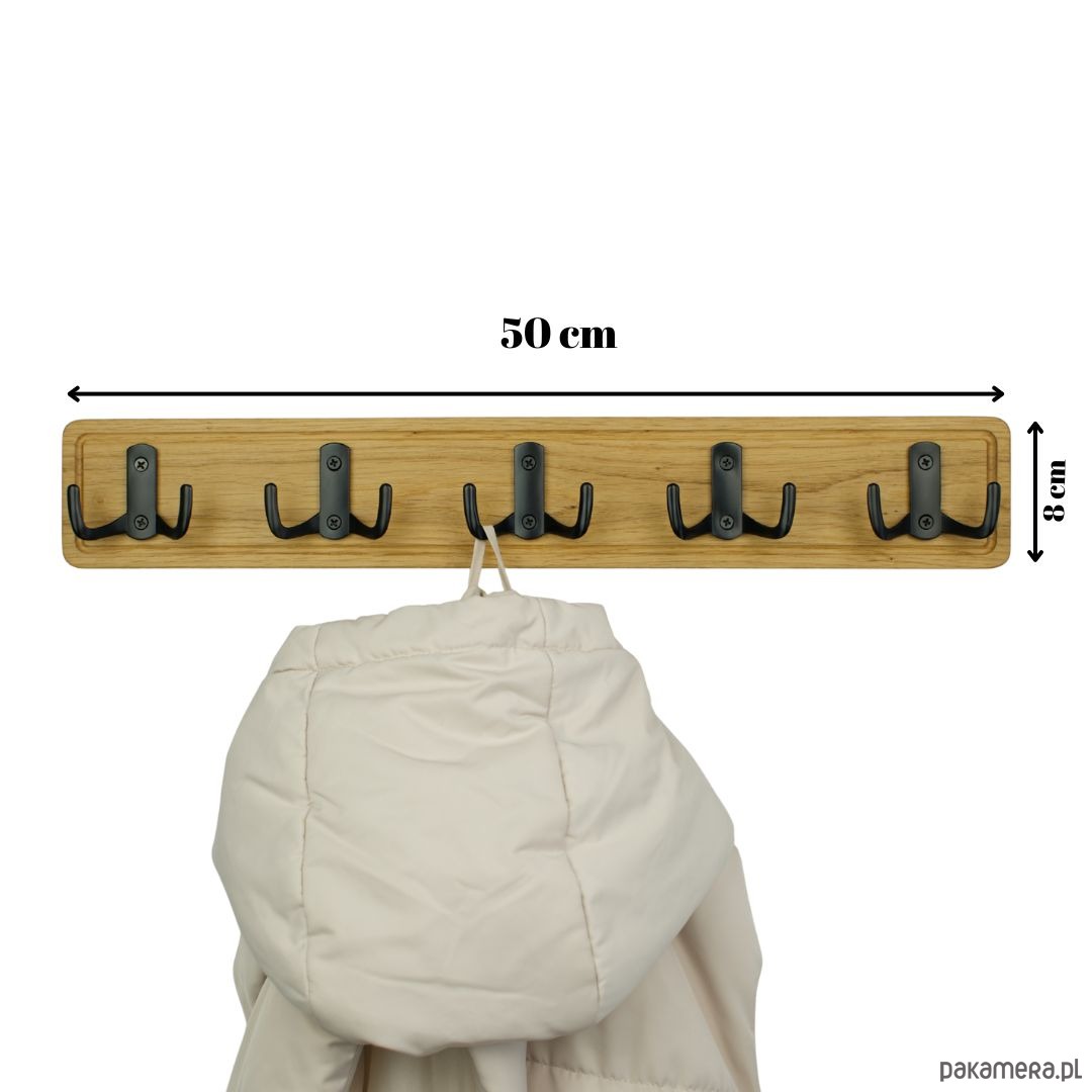 Solidność: 5 podwójnych, czarnych haczyków (już zamontowanych!) pomieści wszystko – od ciężkich płaszczy w przedpokoju, po ręczniki w łazience czy akcesoria w kuchni.