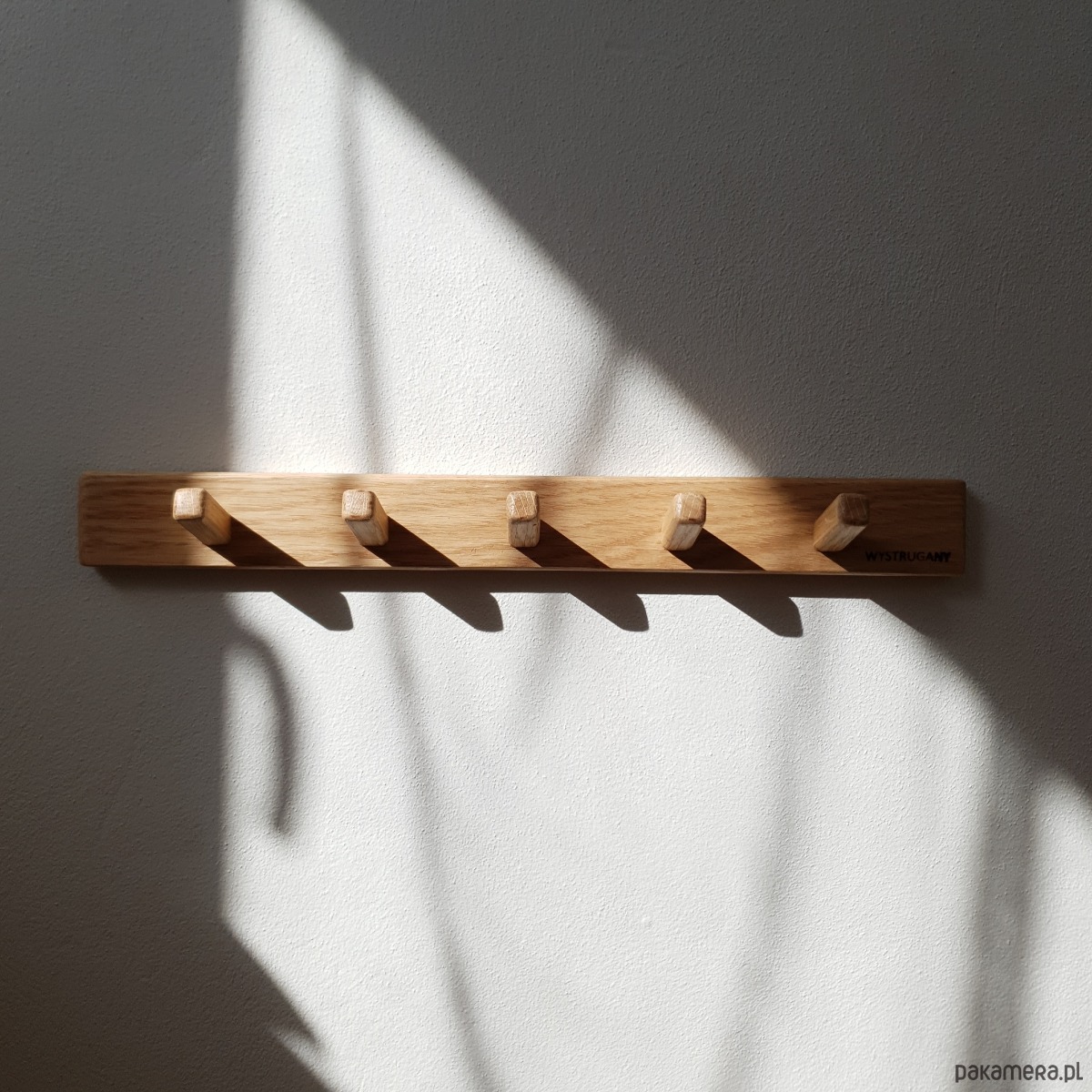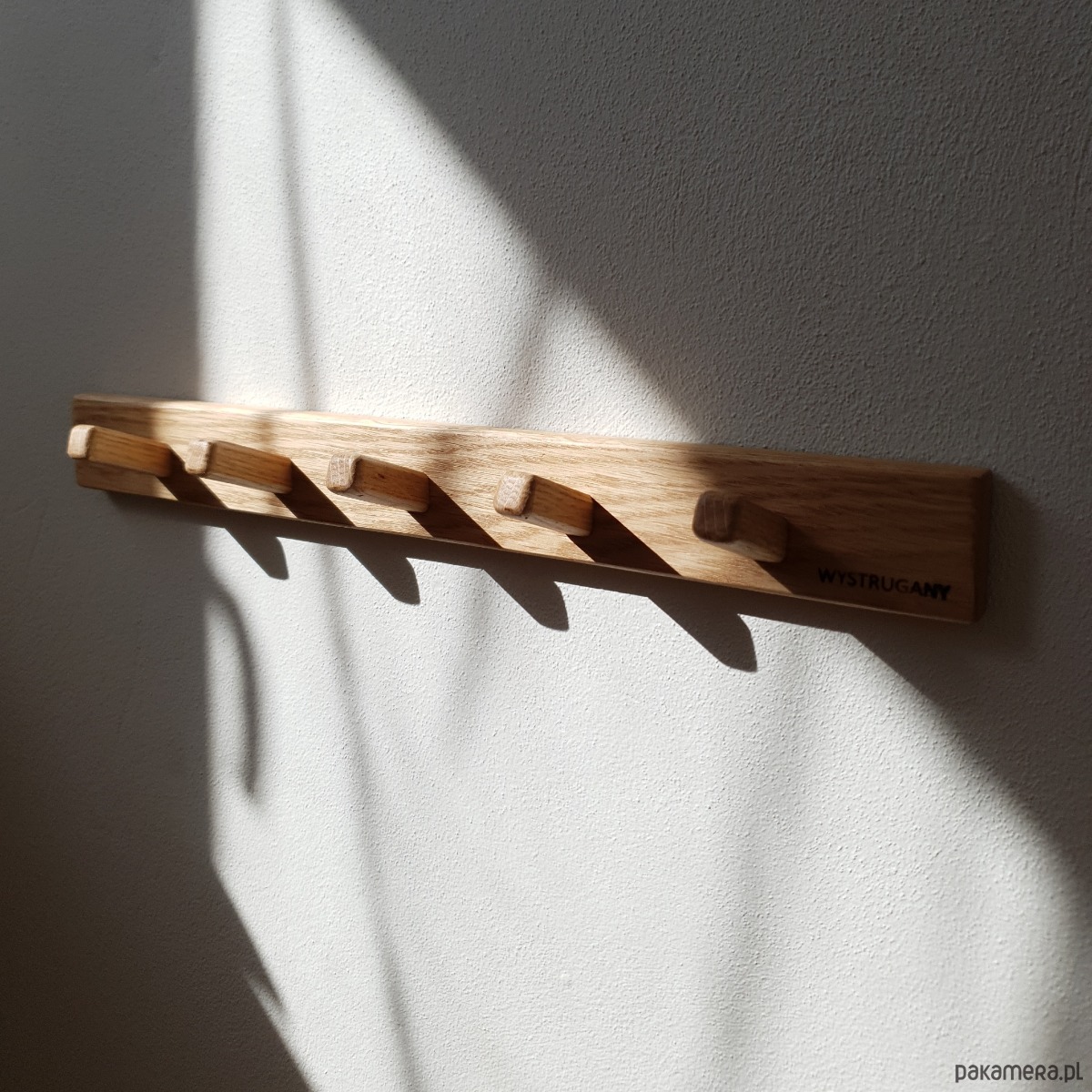 Solidny dębowy wieszak dwukrotnie zabezpieczony olejem twardym wydobywając przy tym piękno dębowego drewna.