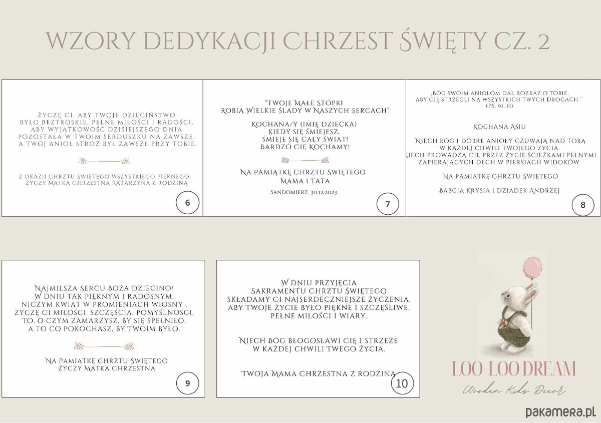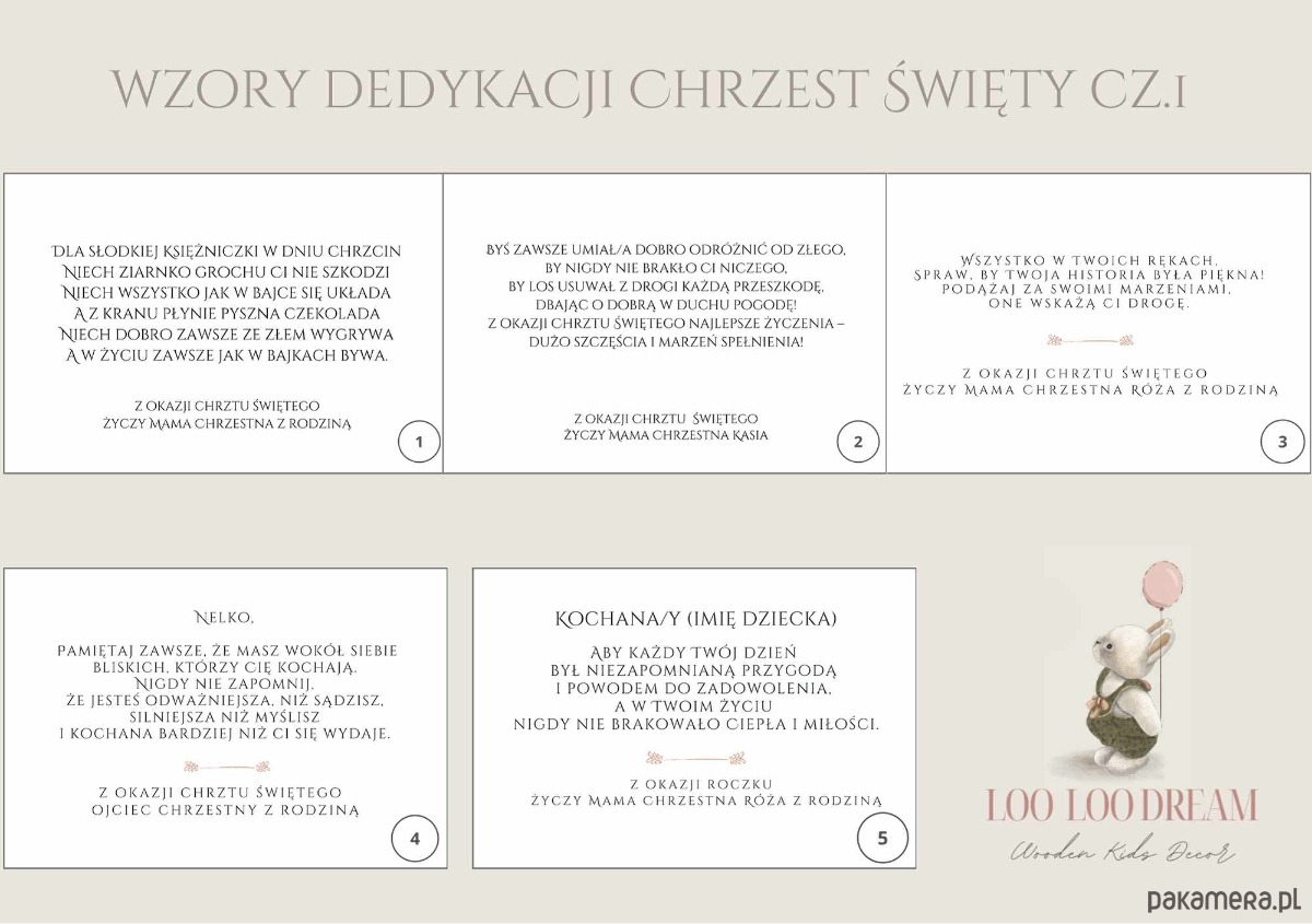 Przy składaniu zamówienia prosimy wybranie wersji dedykacji z planszy oraz o podanie danych do personalizacji, które znajdą się na niej tj. imię dziecka, daty itp.