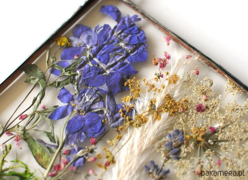 W szkle umieszczone są prawdziwe, suszone kwiaty w rozmaitych kolorach ? ?