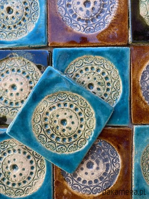 Zestaw 10 dekorów ceramicznych, ręcznie formowanych i szkliwionych, rozmiar jednej płytki to 10/10cm, płytki jak wszystkie artkafle odporme są na temperatury, wodę, ścieralność, montaż standardowy, polecam.