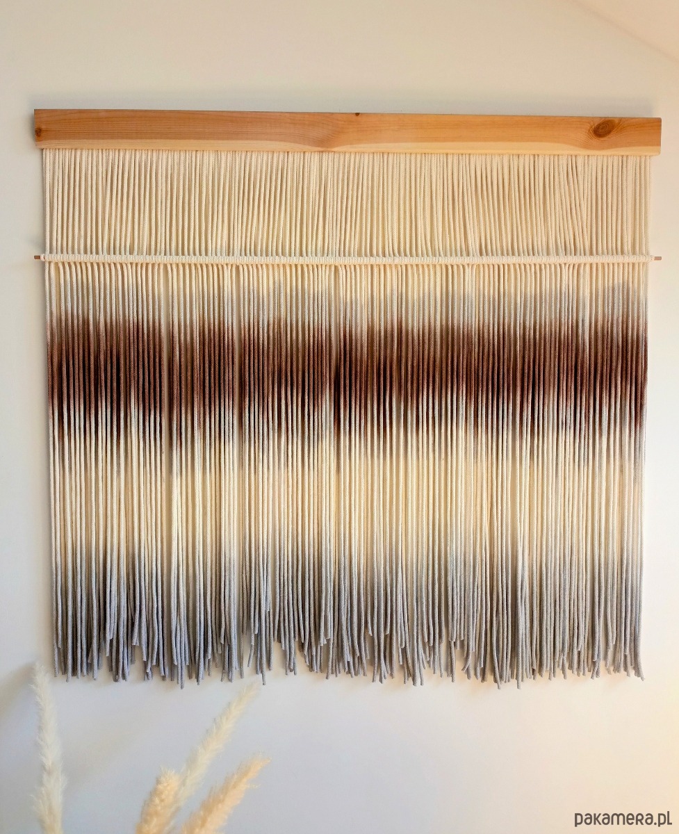 Nierówne przycięcie sznurków to zabieg celowy, aby nadać dekoracji dzikiego i naturalnego klimat.