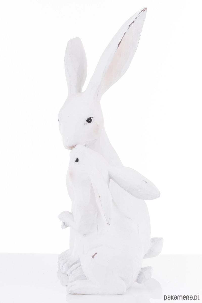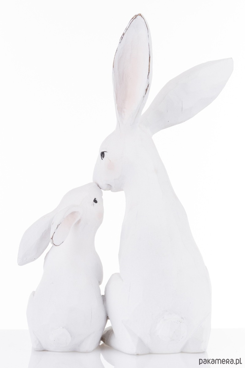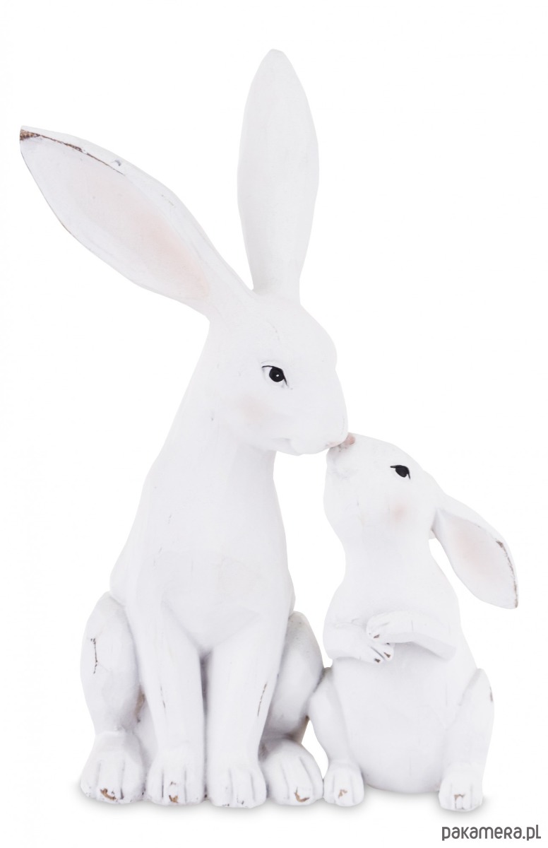 Dekoracja - figurka 2 białe przytulone 27x18x11 cm ZAJĄCZKI-2