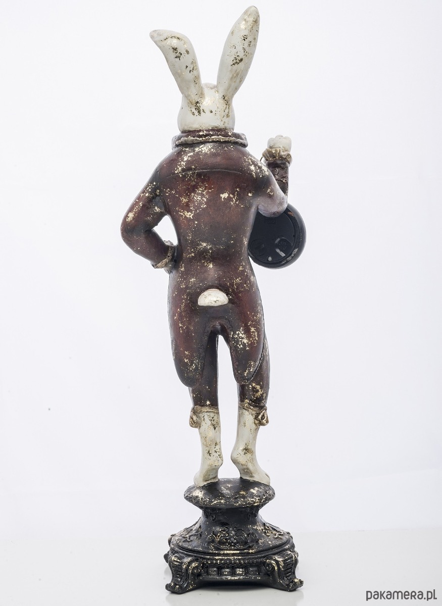 Dekoracja - królik 43x13x10 cm CONIGLIO na podwyższeniu z zegarkiem